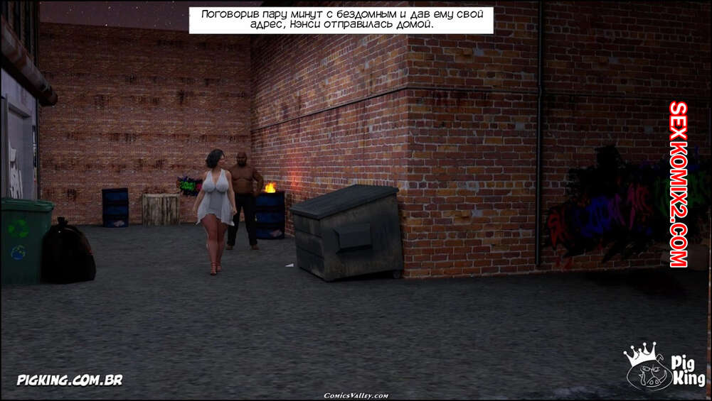 Порно комикс Помощь мамы. Часть 67. Moms Help. CrazyDad3D Горячая милфа Нэнси продолжает наслаждаться большим членом бездомного в переулке. Красотка скачет на его члене, получая от этого огромное удовольствие и оргазмы.