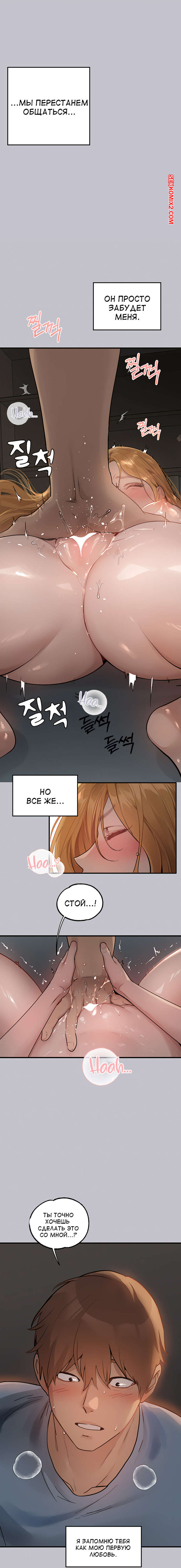 Порно комикс Хозяйка здания. Моя прекрасная нуна. Части 113 и 114. Пришел к девушке домой чай попить, просто чай. А она начала раздеваться, показывать сиськи. Парень запаниковал и случайно ее выебал.