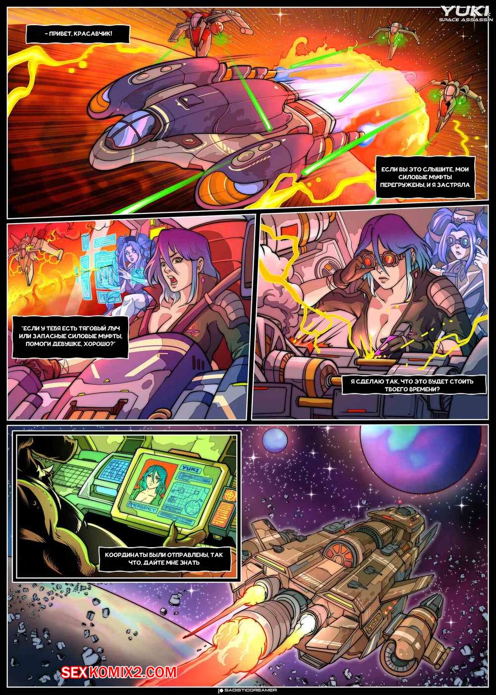 Порно комикс Юки. СтрахНенависть у Асмодаевой. Часть 3. Yuki. FearLoathing in Asmodaeva Горячая красотка была очень возбуждена и решила повеселиться с парнями на космическом корабле. Она разделась и дала им себя выебать во все дырочки и заполнить ее спермой.