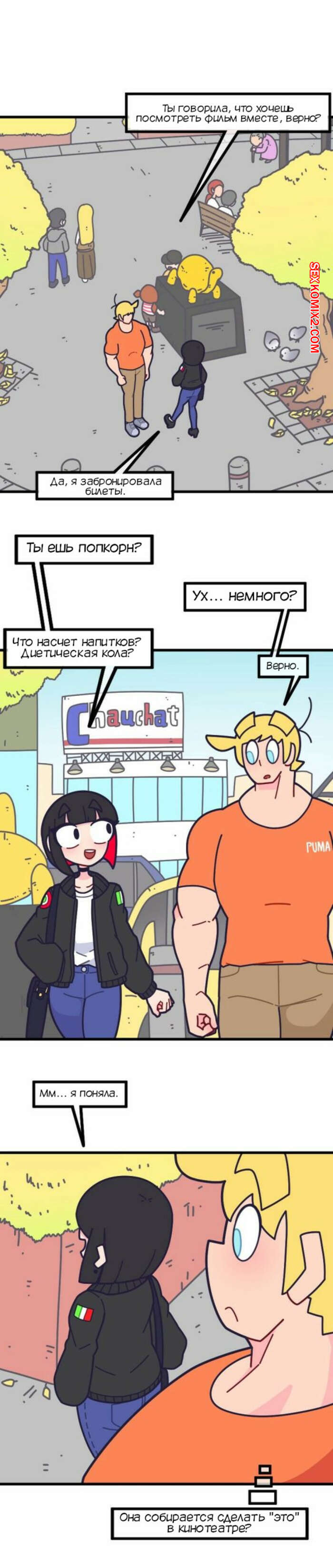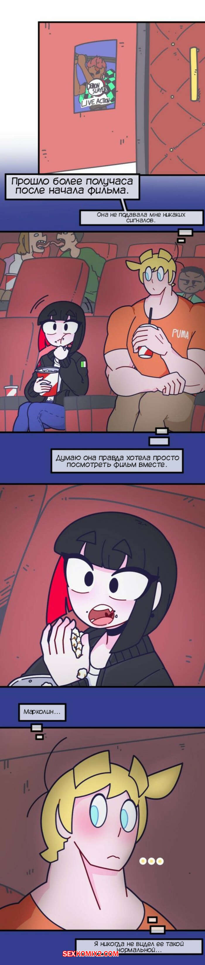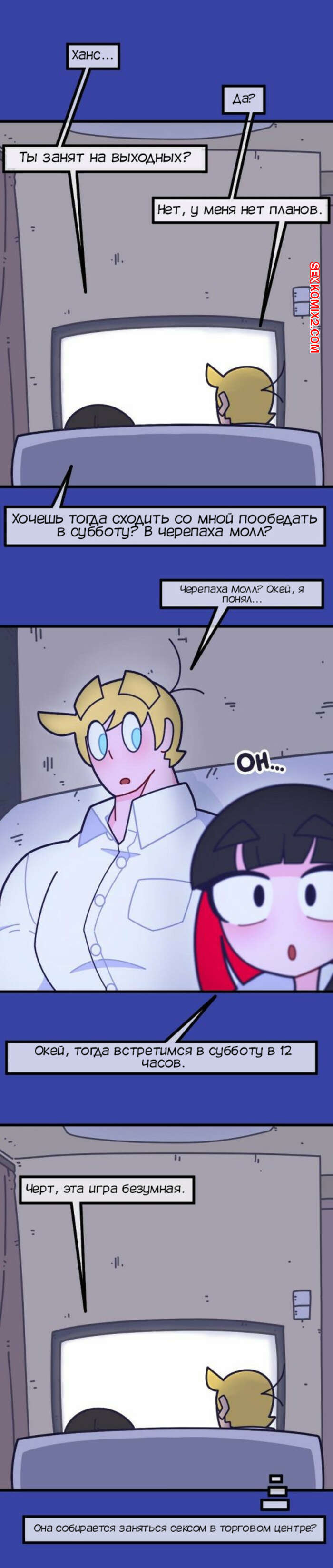 Порно комикс Привет Марколин Р. Часть 11. Hello Marcolin R. Kozatchu Марколин пригласила Ханса в кино. Парень отправился на встречу с девушкой, ожидая, что они будут трахаться прямо в кинозале, но к его удивлению все прошло абсолютно нормально.