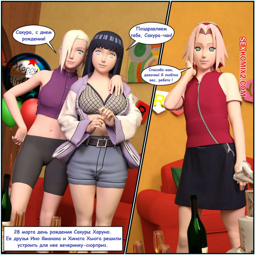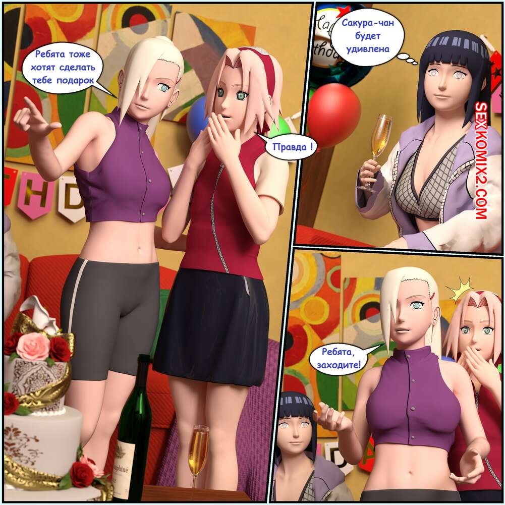 Порно комикс Наруто. День рождения Сакуры. Birthday Sakura. Darkfaust Горячие красотки решили устроить вечеринку на день рождения Сакуры. Они пригласили парней, которые дали девушкам отсосать свои хуи и выебали их во все дырочки.