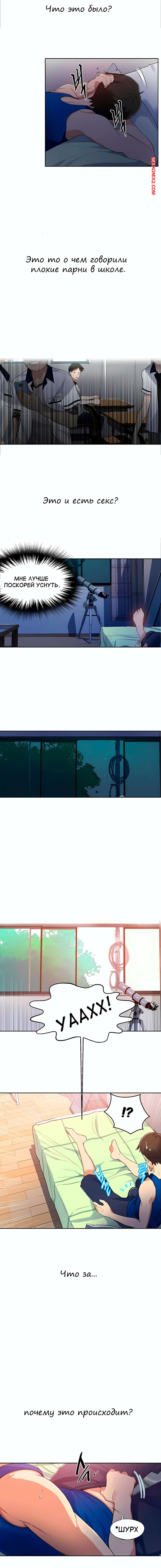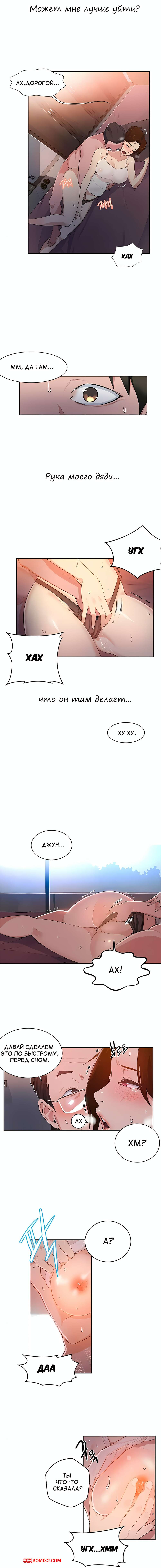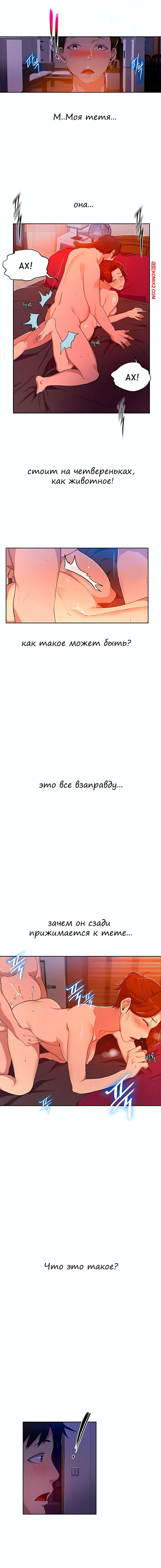 Порно комикс Тайное обучение. Без цензуры. Части 0 и 1 и 2. Secret Class Сисястая брюнетка милфа была очень возбуждена и решила повеселиться со своим мужем. Красотка разделась и дала любимому себя выебать, но ее племянник услышал стоны милфы и стал подсматривать за ними.