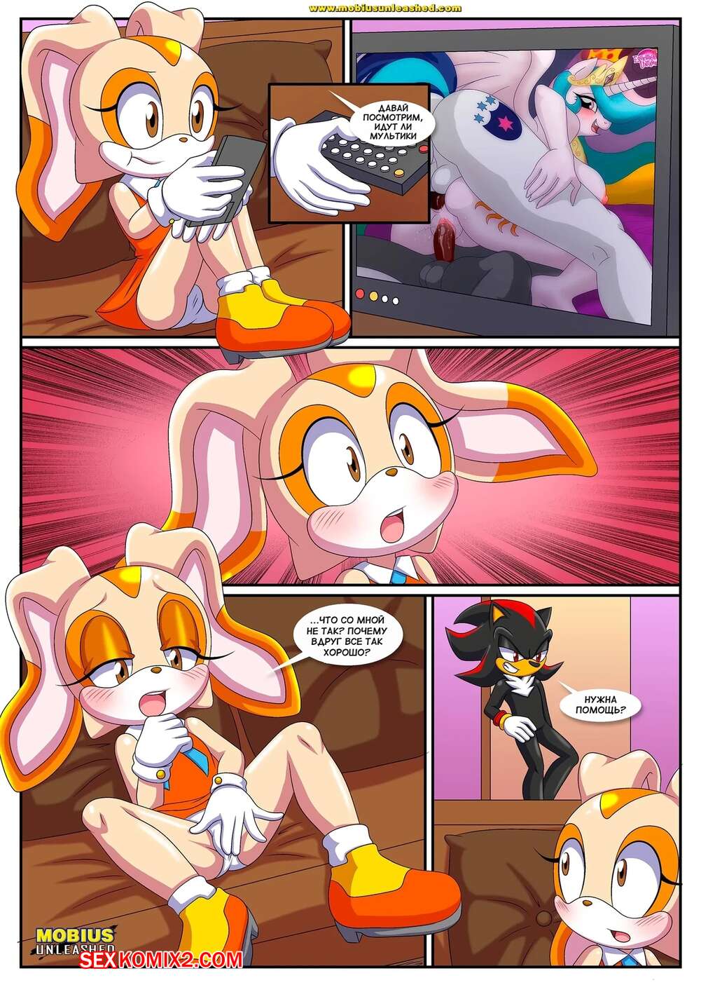 Порно комикс Соник. Роман няни. Часть 1. The Baby Sitter Affair. Palcomix. Шэдоу спалил молодую девушку за дрочкой и решил помочь ей своим членом. Он дал красотке отсосать свой большой хуй, после чего выебал ее пизденку и заполнил своей спермой.