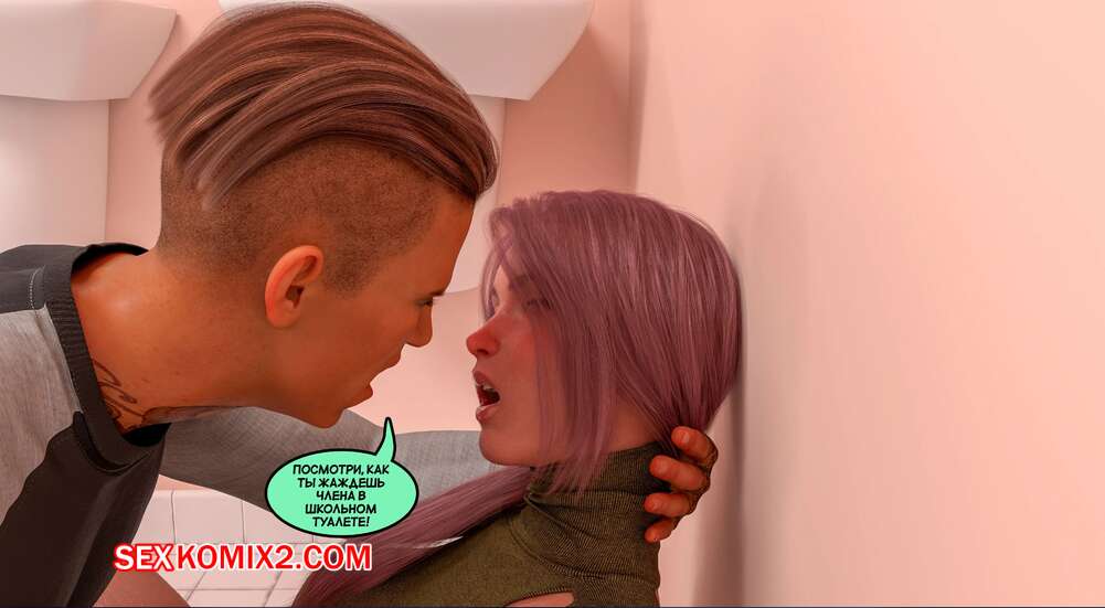 Порно комикс Тайное предательство. Часть 3. Undercover Betrayal. Mr.SweetCuckhold Красотка была очень возбуждена во время урока, поэтому она поскорее отправилась в туалет и стала ласкать свою пизденку. Там к ней присоединился парень, который выебал девушку и кончил в нее.