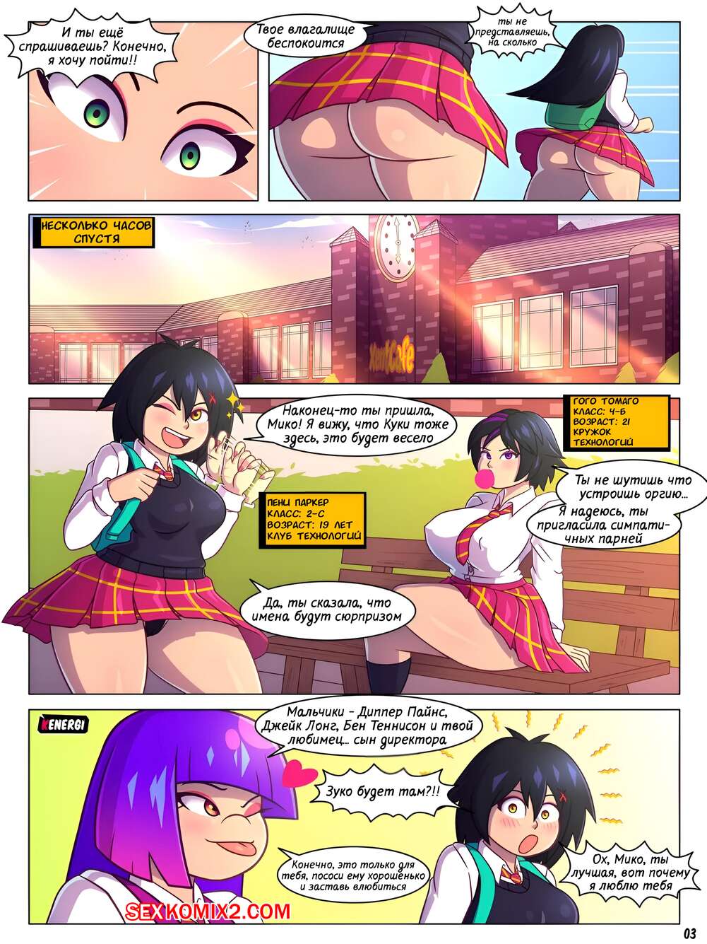 Порно комикс Академия Тунворт. Toonworth Academy. Kenergi Сексуальная брюнетка ходила в академии без настроения и ее подруга сразу это заметила. Девушке предложила подруге поднять ей настроение, занявшись страстной лесбийской еблей.