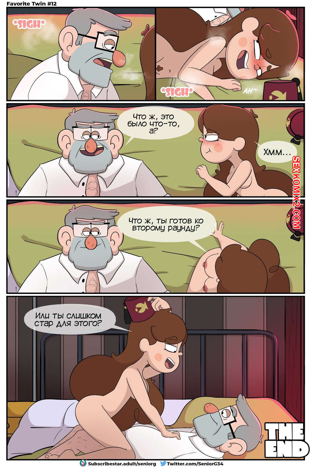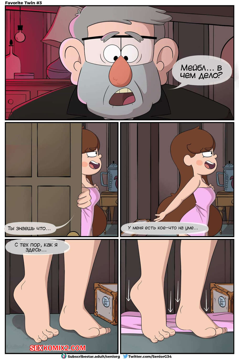Порно комикс Gravity Falls. Любимый близнец. Favorite Twin. SeniorG. Горячая брюнетка Мейбл была очень возбуждена и решила повеселиться с дядей Стэном. Она разделась и отсосала большой хуй дяди, после чего дала ему себя хорошенько выебать.