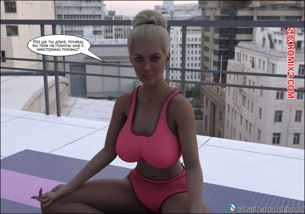 Порно комикс Мамина йога. Часть 1. Moms Yoga. NandoF Сисястая блондинка милфа занималась йогой и обратилась за помощью к сыну. У парня встал член изза задницы мамочки, поэтому красотка решила ему помочь расслабиться.