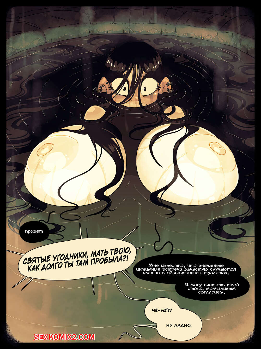 Порно комикс Жуткая дочь хозяина. Spooky. The Landlords Daughter. Rapscallion Сексуальная брюнетка была очень возбуждена и решила повеселиться со своим дружком. Красотка разделась перед парнем и отсосала его большой хуй, после чего дала ему себя выебать.