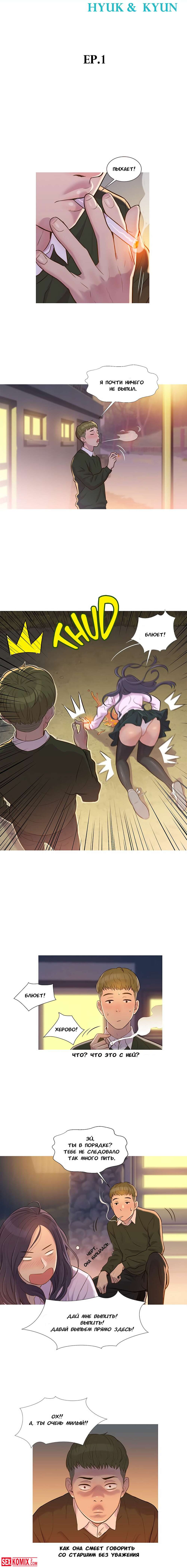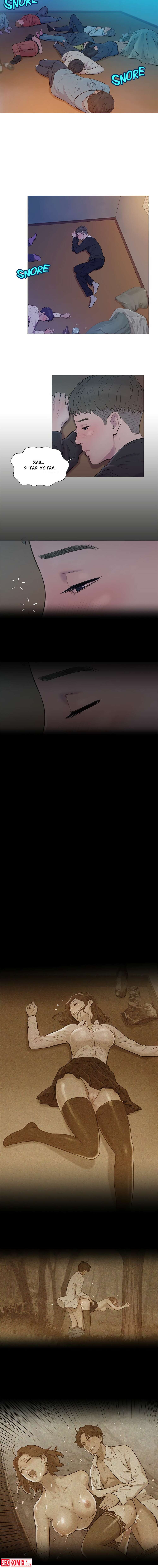 Порно комикс Первокурсник. Части 1 и 2. Во время студенческой вечеринки парень пошел проветрица и увидел своих учителей, они трахались у дерева.