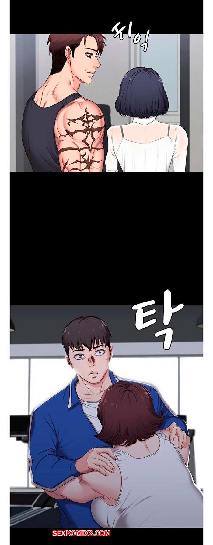 Порно комикс Фитнес. Без цензуры. Часть 1 и 2 и 3. Fitness Парень был очень возбужден и решил повеселиться со своей сексуальной подругой. Он раздел девушку и стал ласкать ее пизденку, после чего выебал ее своим большим хуем.