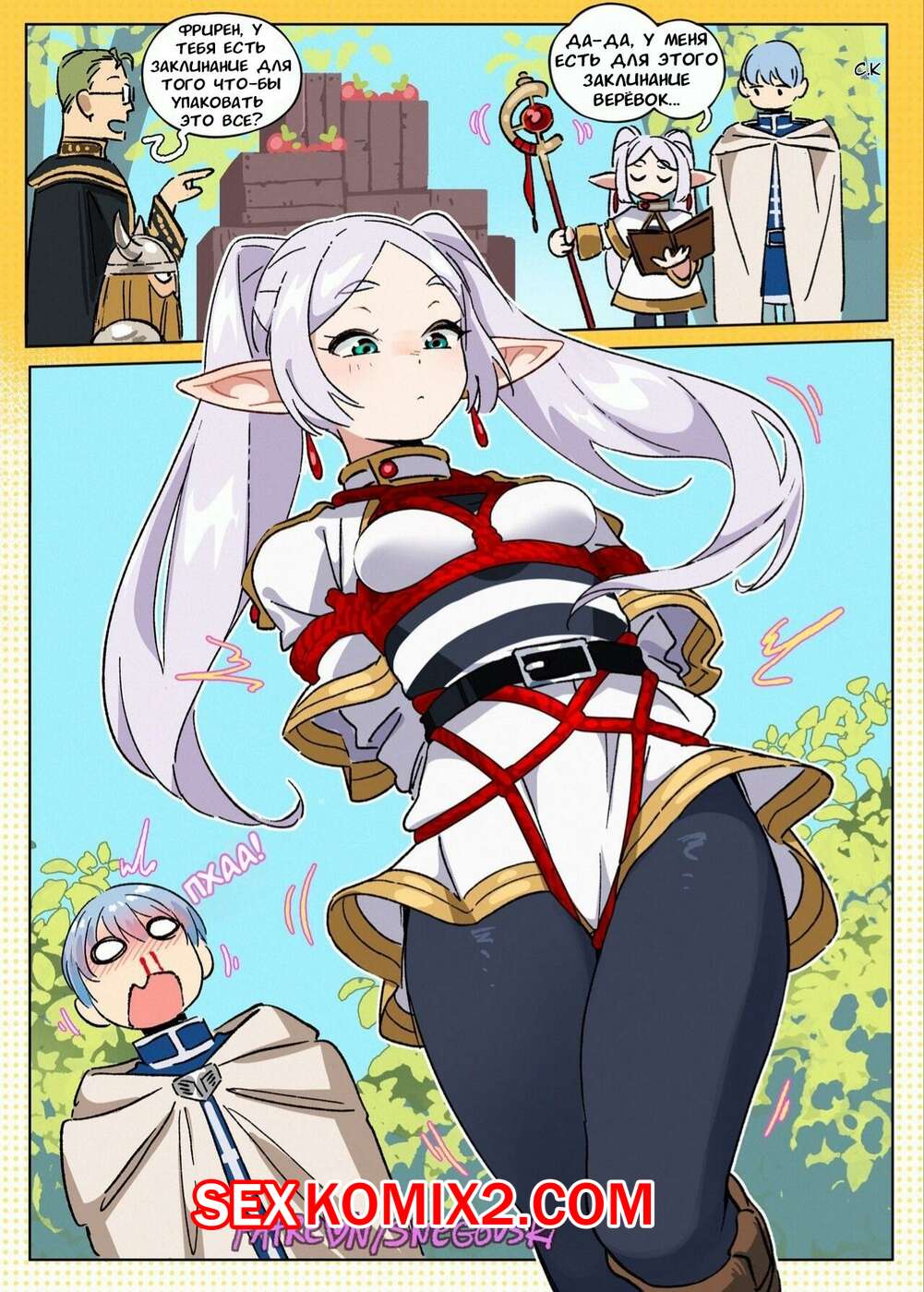 Порно комикс Sousou no Frieren. Недопонимающая Фрирен. snegovski
