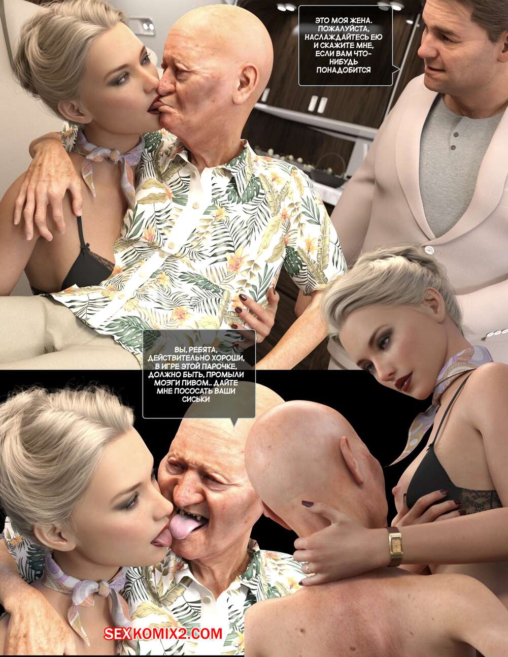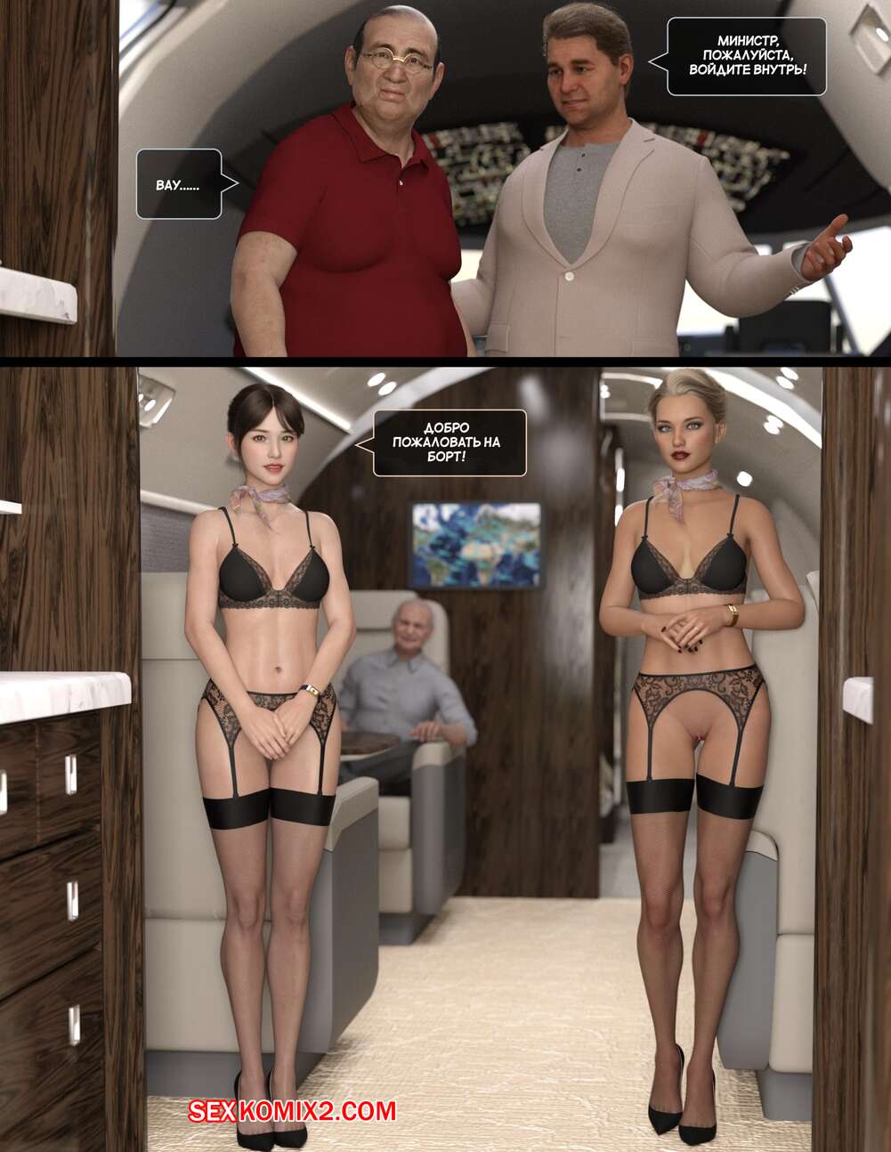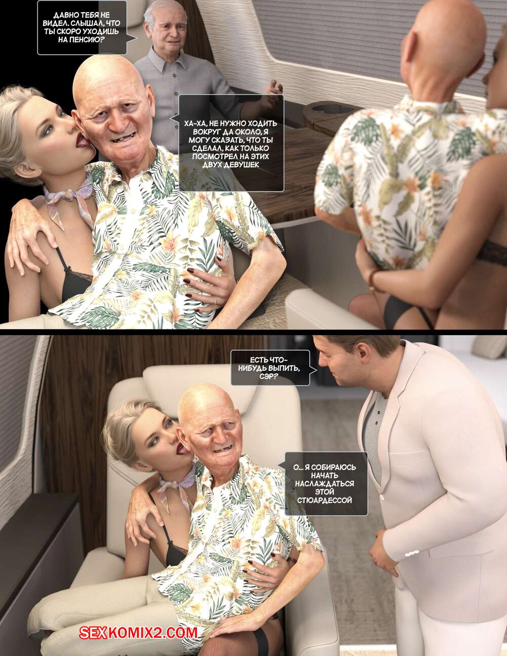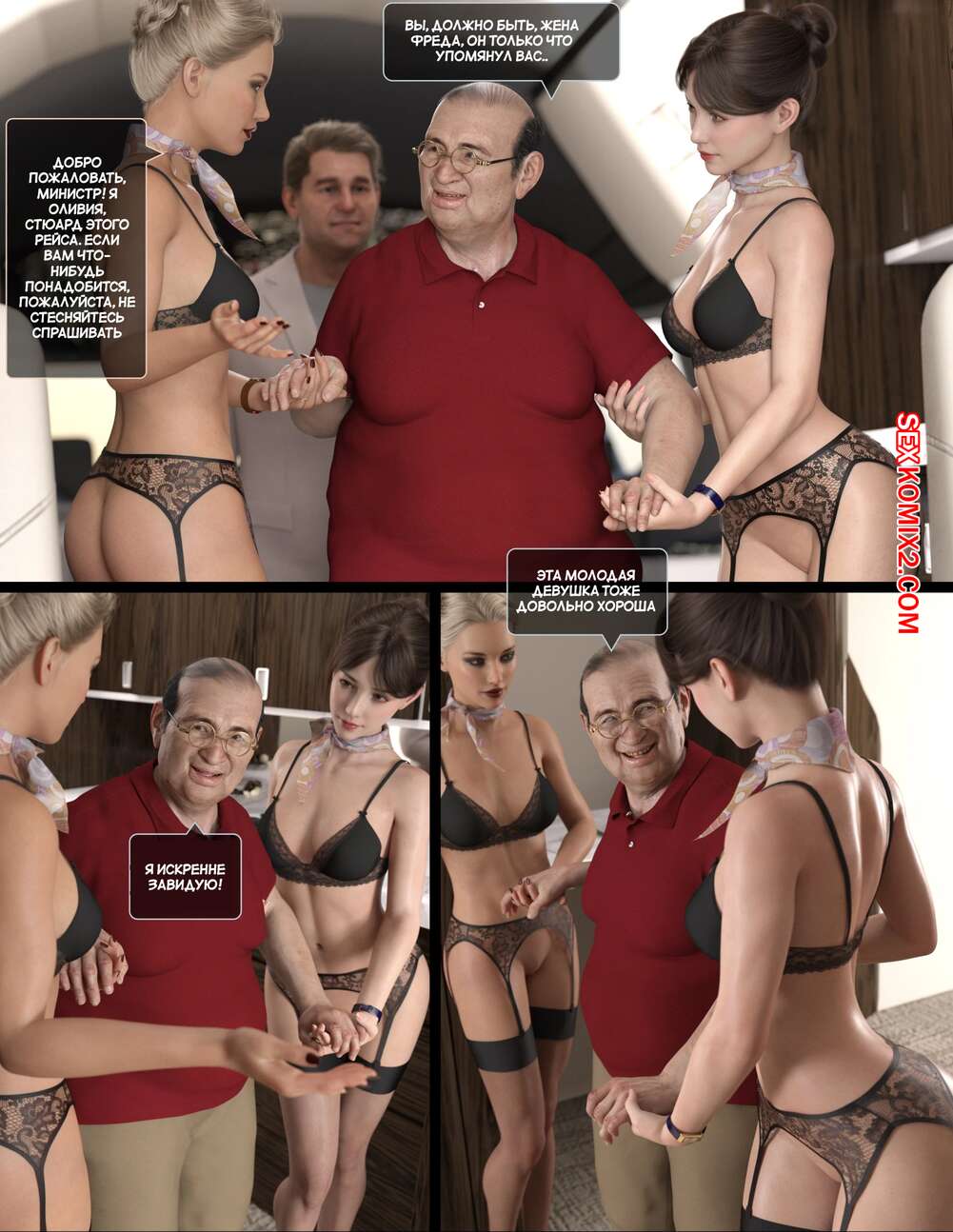Порно комикс Полет похоти. Часть 4. Lust flight. Awe Some Ryan Горячие красотки стюардессы продолжают оказывать особые услуги своим клиентам. Девушки раздеваются и сосут хуи стариков, после чего дают им себя хорошенько выебать.