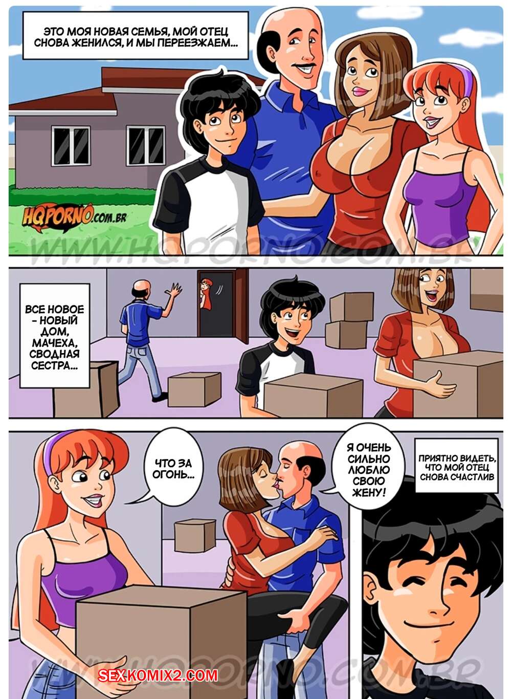 Порно комикс Семейка порно. Часть 6. Новая семья. Familia Foda. HQPorno Отец молодого парня женился на горячей милфе и теперь у парня появилась горячая мачеха и сводная сестра. Парень с девушкой часто проводят время вместе и любят потрахаться.