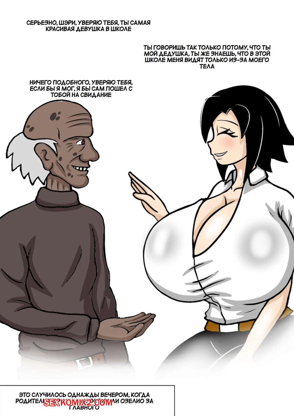 Порно комикс Влюбленный дедушка. Часть 1. Grandpa in Love. Dibuctor. Темнокожий старик был очень возбужден и решил повеселиться со своей сексуальной внучкой. Он раздел красотку и дал ей отсосать свой большой хуй, после чего выебал ее пизденку и кончил в нее.