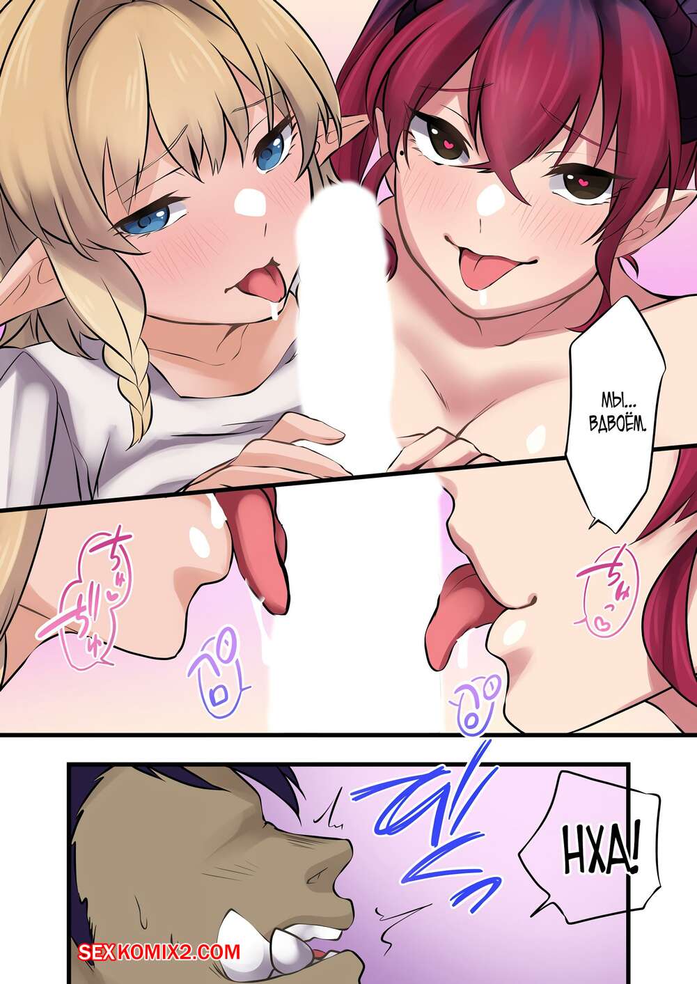 Порно комикс Реинкарнированный орк создал свой гарем. Часть 8. Kurono Lehua Горячие красотки были очень возбуждены и решили повеселиться со своим дружком с большим хуем. Девушки разделись и отсосали большой хуй парня, после чего дали ему себя выебать.