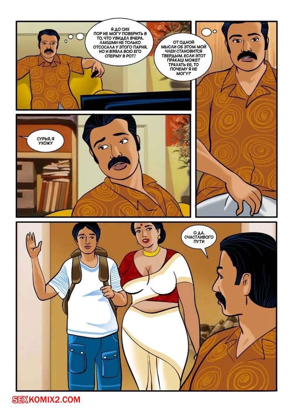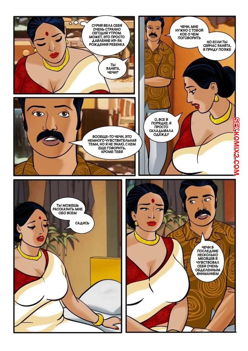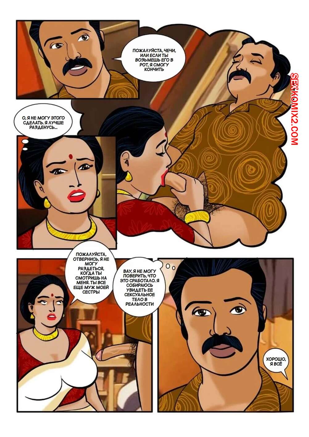 Порно комикс Веламма. Часть 3. Velamma. Velamma Сисястая брюнетка милфа была очень возбуждена и решила повеселиться с мужем своей подруги. Она разделась и отсосала его большой хуй, после чего дала мужчине себя выебать.