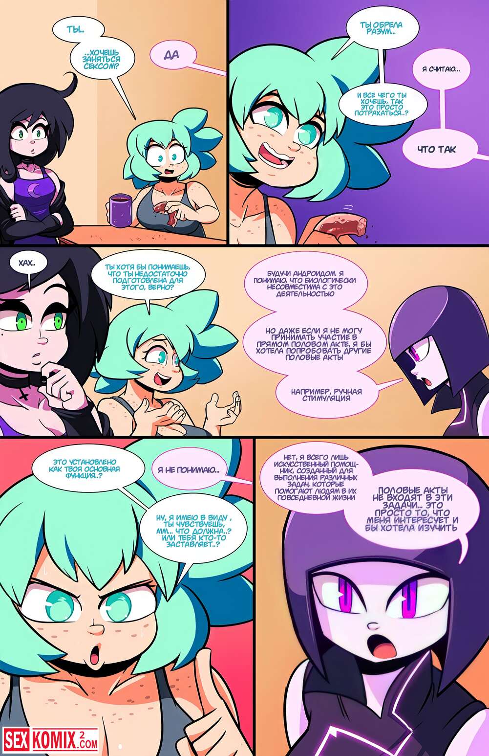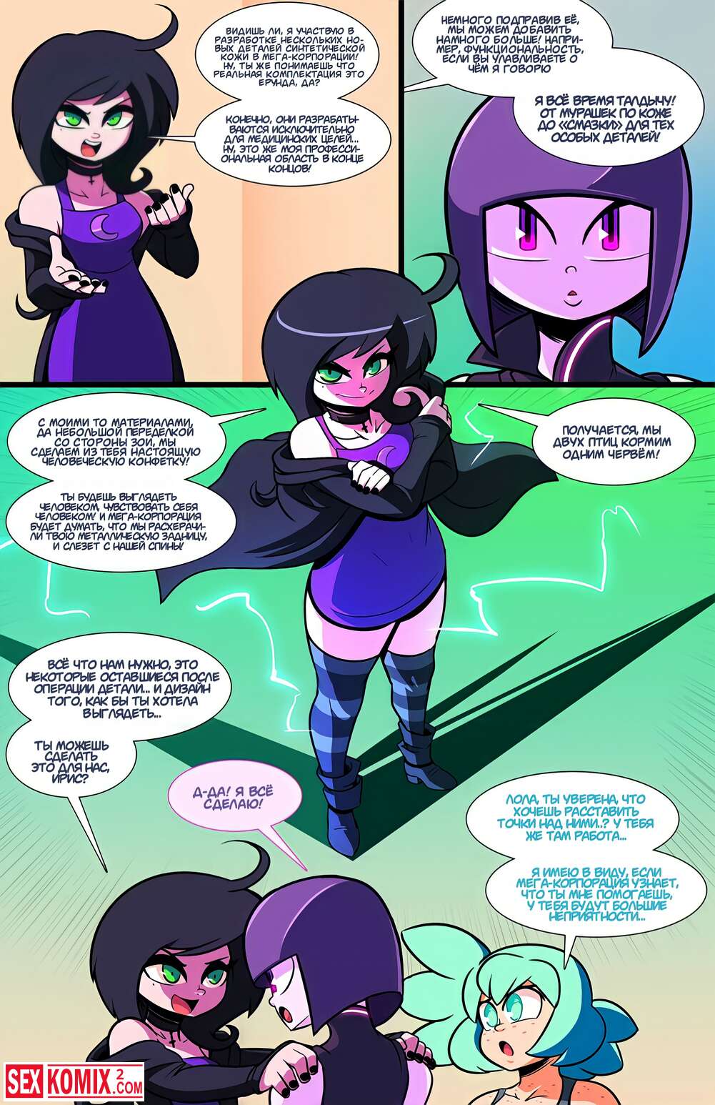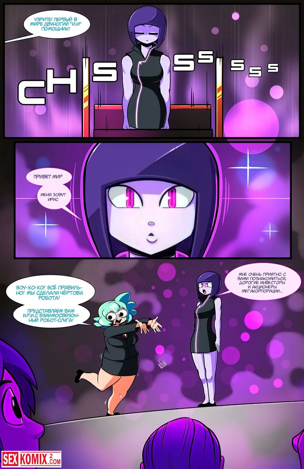 Порно комикс Эротехника. Часть 1. Женщина разработчик создала андроида для секса, после перезентации инвесторы поверили в этот продукт, но для создательницы это был не просто робот. Она лучшая подруга и любовница.