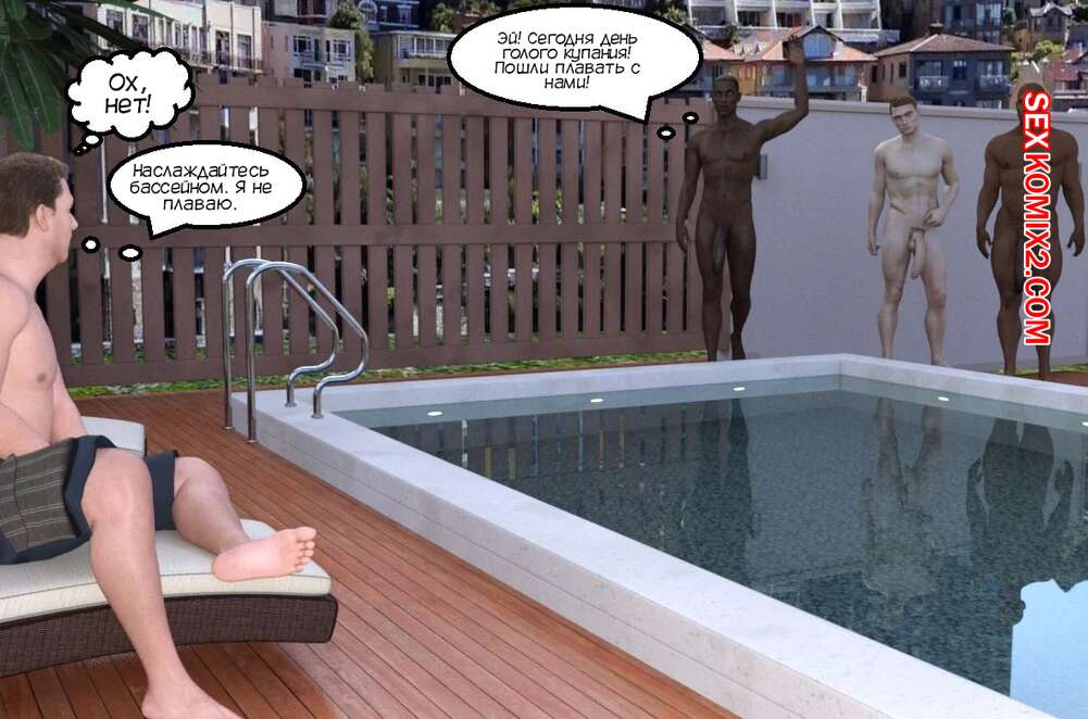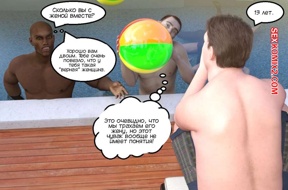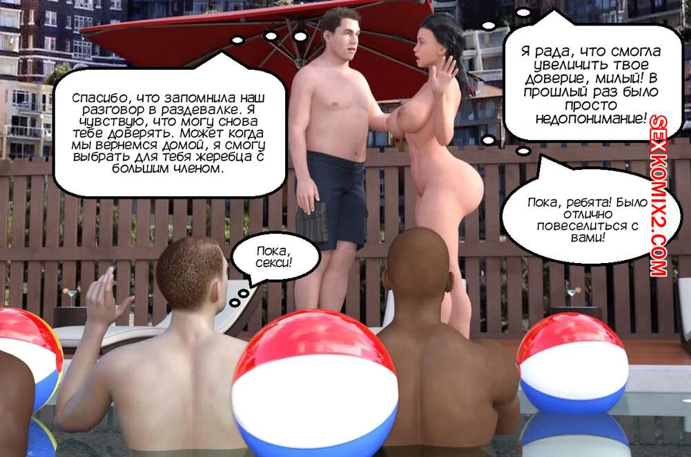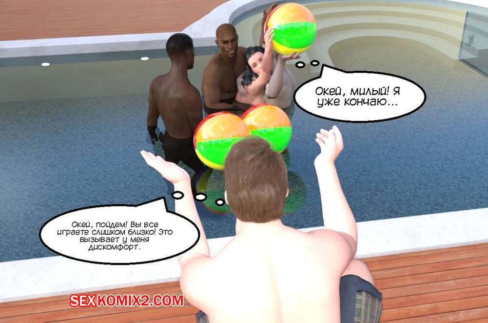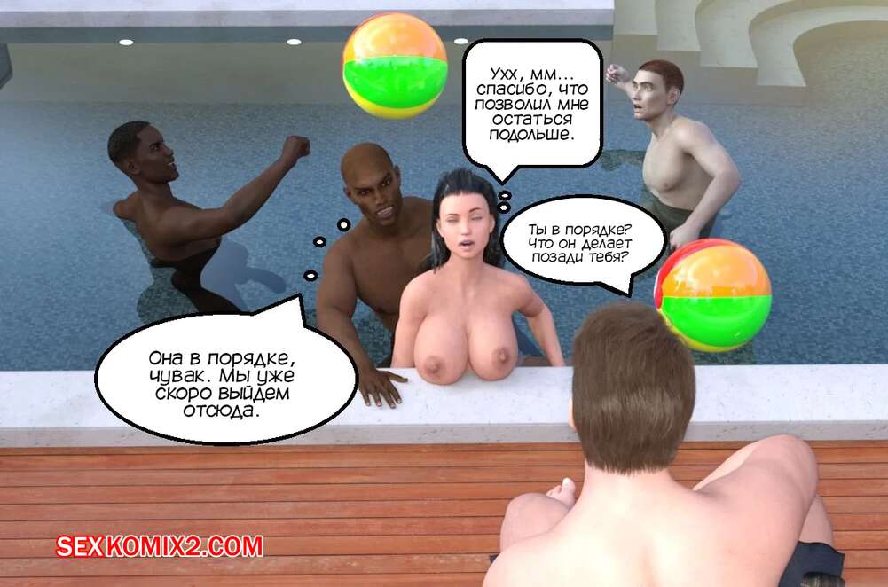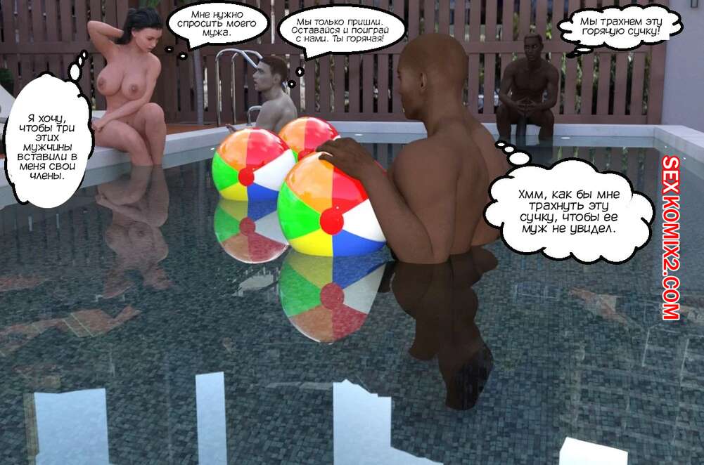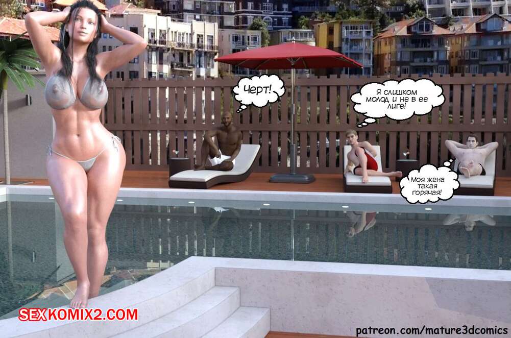 Порно комикс Вечеринка у бассейна для куколда. Cuckold Pool Party. Mature3DComics. Горячая милфа отдыхала у бассейна со своим мужем куколдом. Красотка решила повеселиться с парнями и стала сосать их большие хуи, после чего дала им себя выебать во все дырочки.