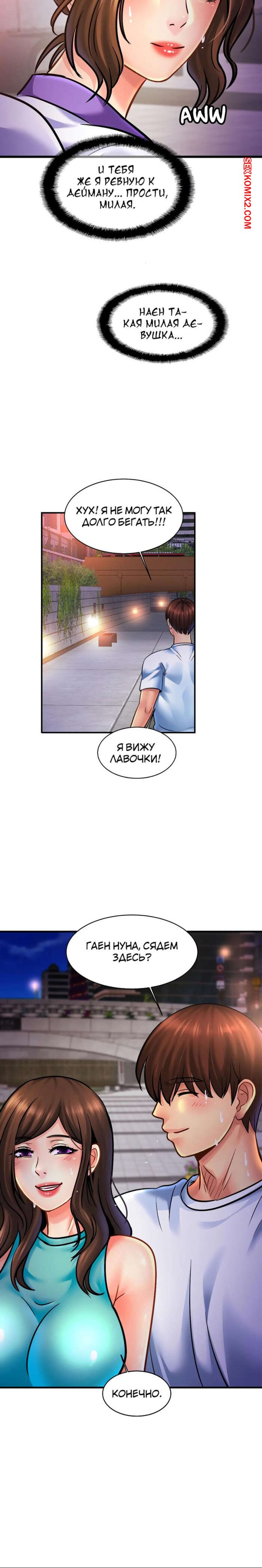 Порно комикс Близкие родственники. Часть 58 и 59. Close Family Парень отправился на прогулку со своей горячей подругой. Они присели на лавочку и парень усадил девушку к себе на колени, после чего стал ее целовать, желая соблазнить красотку.