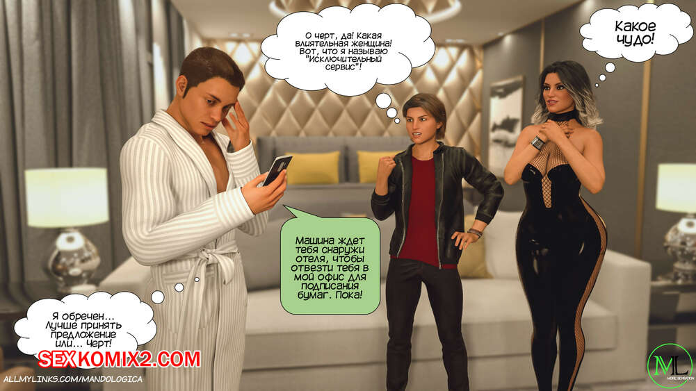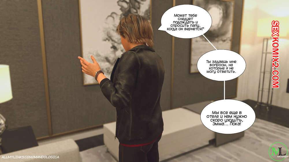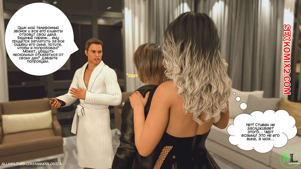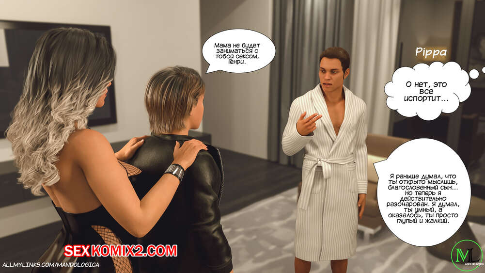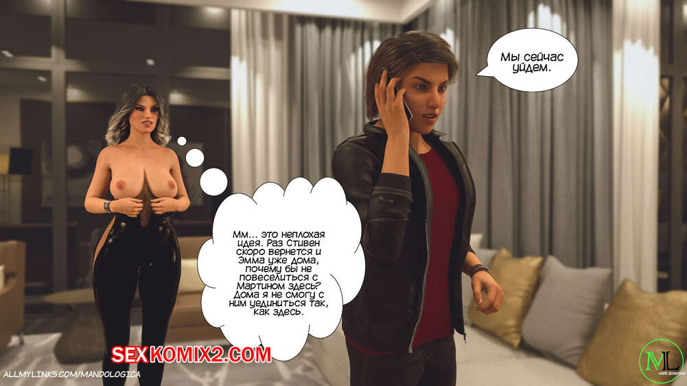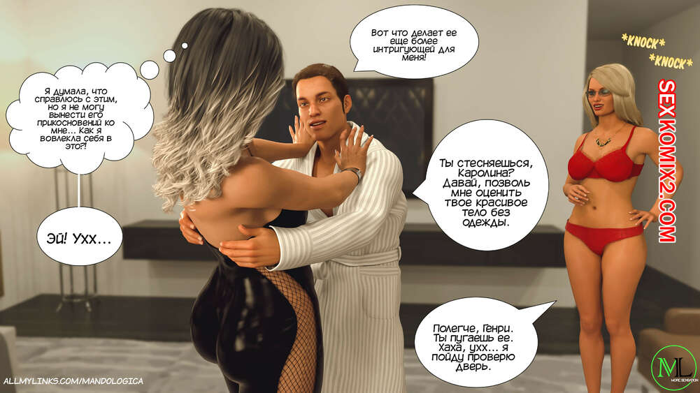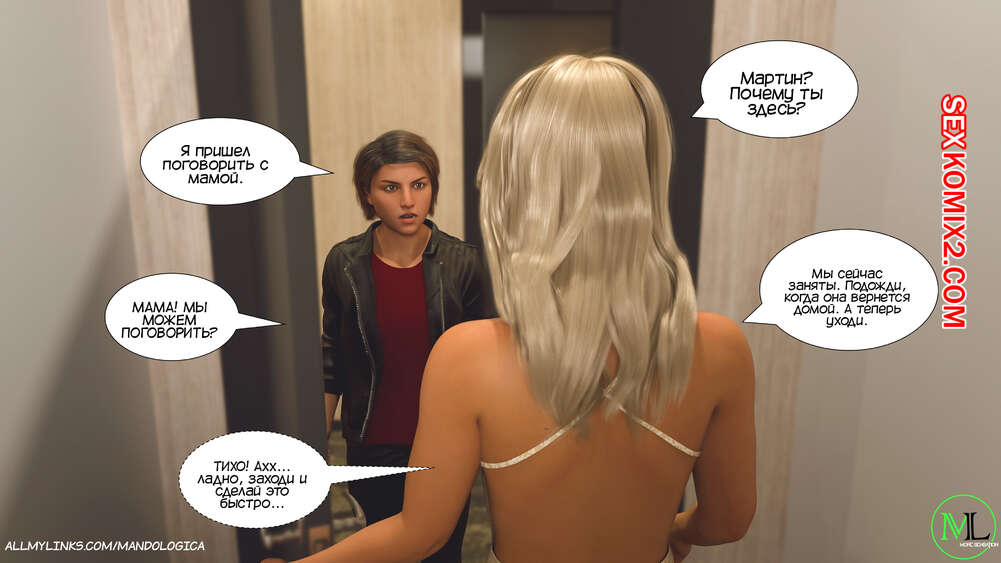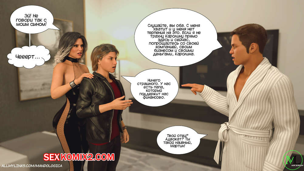 Порно комикс Все вместе. Часть 16. Teamwork. MandoLogica Мартин и Эмма встретили Каролину с самого утра и решили воплотить свой план. Они начали соблазнять маму и сделали ей приятно своими словами, после чего стали раздевать ее, желая заняться сексом.