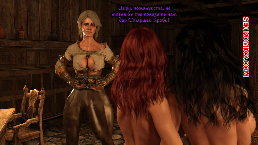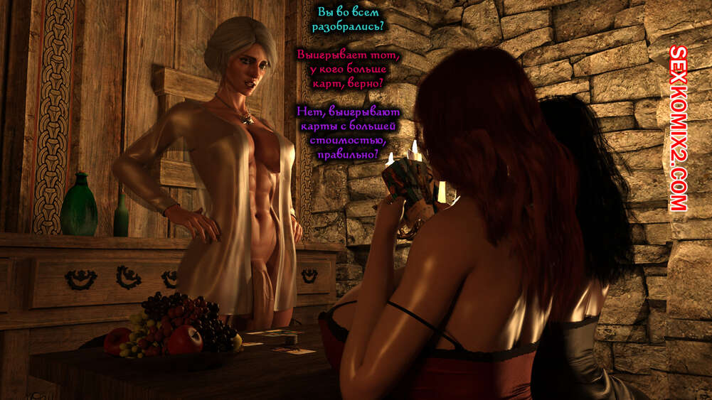 Порно комикс The Witcher. Ритуал Йеннифэр. Часть 3. Serge3dx Блондиночка с большим хуем была очень возбуждена и решила повеселиться со своими подругами. Брюнеточки разделись и отсосали хуй подруги, после чего дали ей себя выебать во все дырочки.