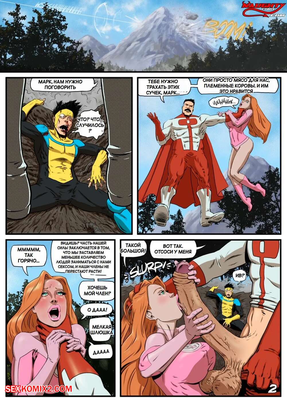 Порно комикс Неуязвимый. Не такая уж и невидимая. Not So Invisible. Fenris Comix Старик решил преподать урок своему сыну. Он схватил горячую рыжую красотку и дал ей отсосать свой большой хуй, после чего выебал пизденку красотки на глазах своего сына.