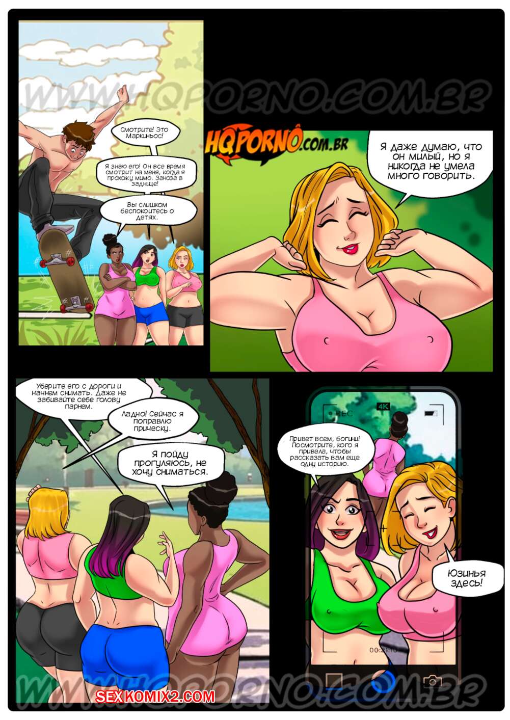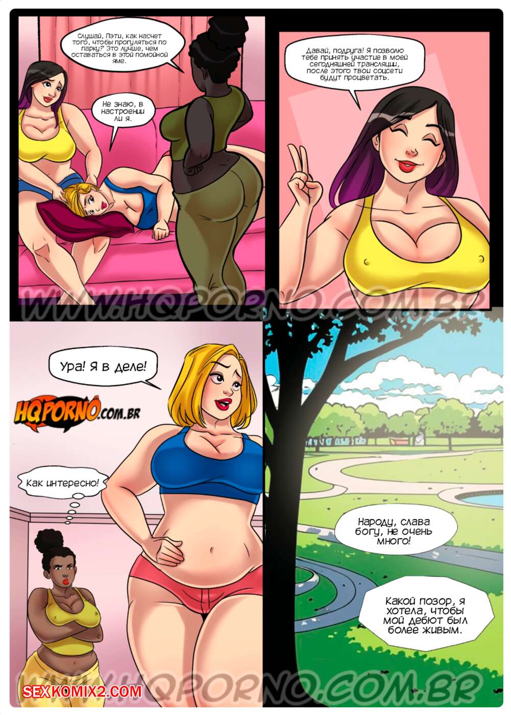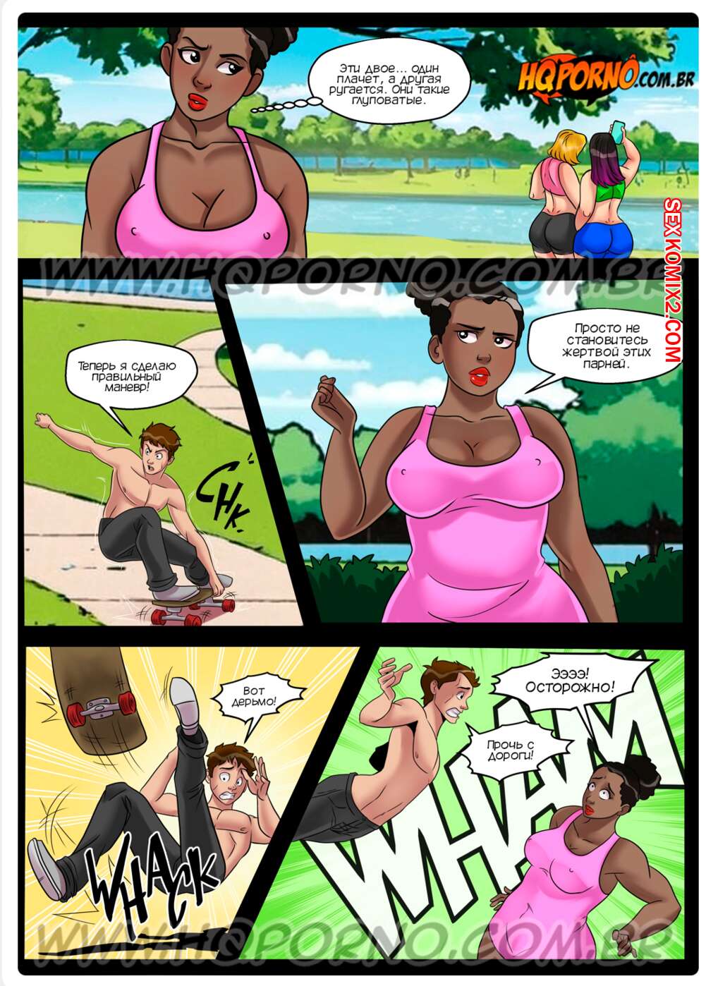 Порно комикс Толстячки. Часть 1. Безумие в парке. As gordelcias. HQPorno Три подруги отправились в парк на прогулку, но темнокожая Иса решила пройтись одна. Она столкнулась с юным парнем и возбудилась увидев его стояк, поэтому она дала новому знакомому выебать свою попку.