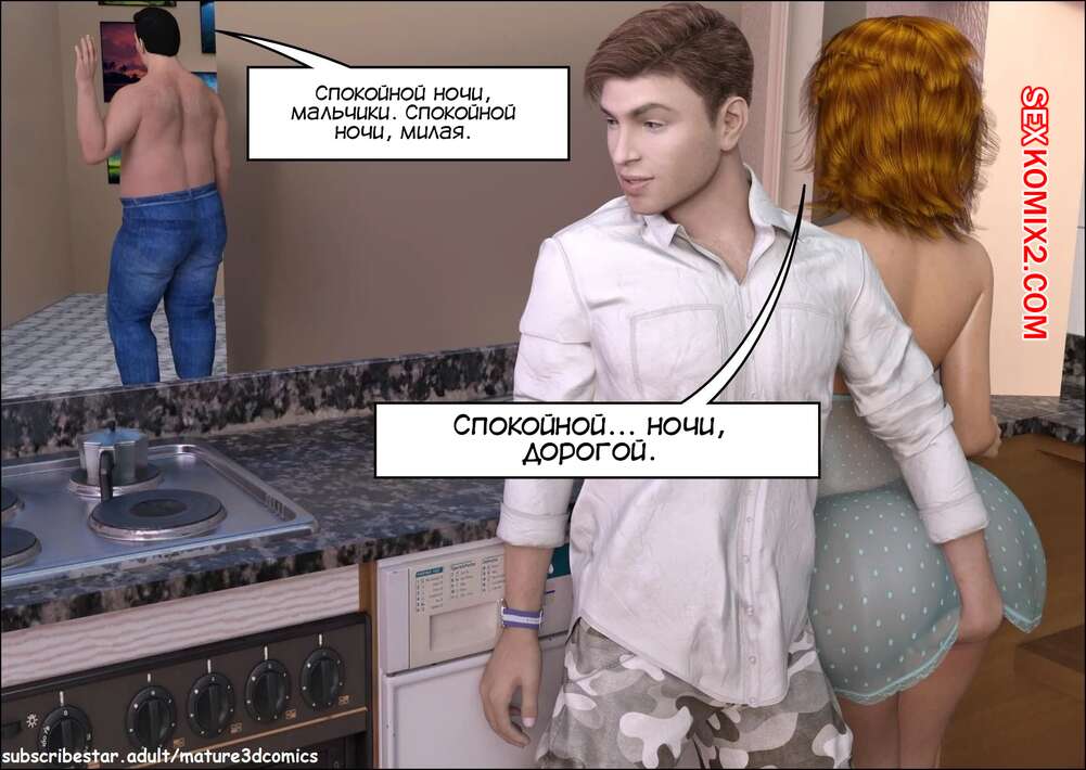 Порно комикс Тетя Элси. Часть 6. Aunt Elise Mature3DComics Парни повели тетю Элси в спальню, где спал ее муж Фрэнк. Они раздели милфу и возбудили ее своими прикосновениями, после чего выебали ее во все дырочки.