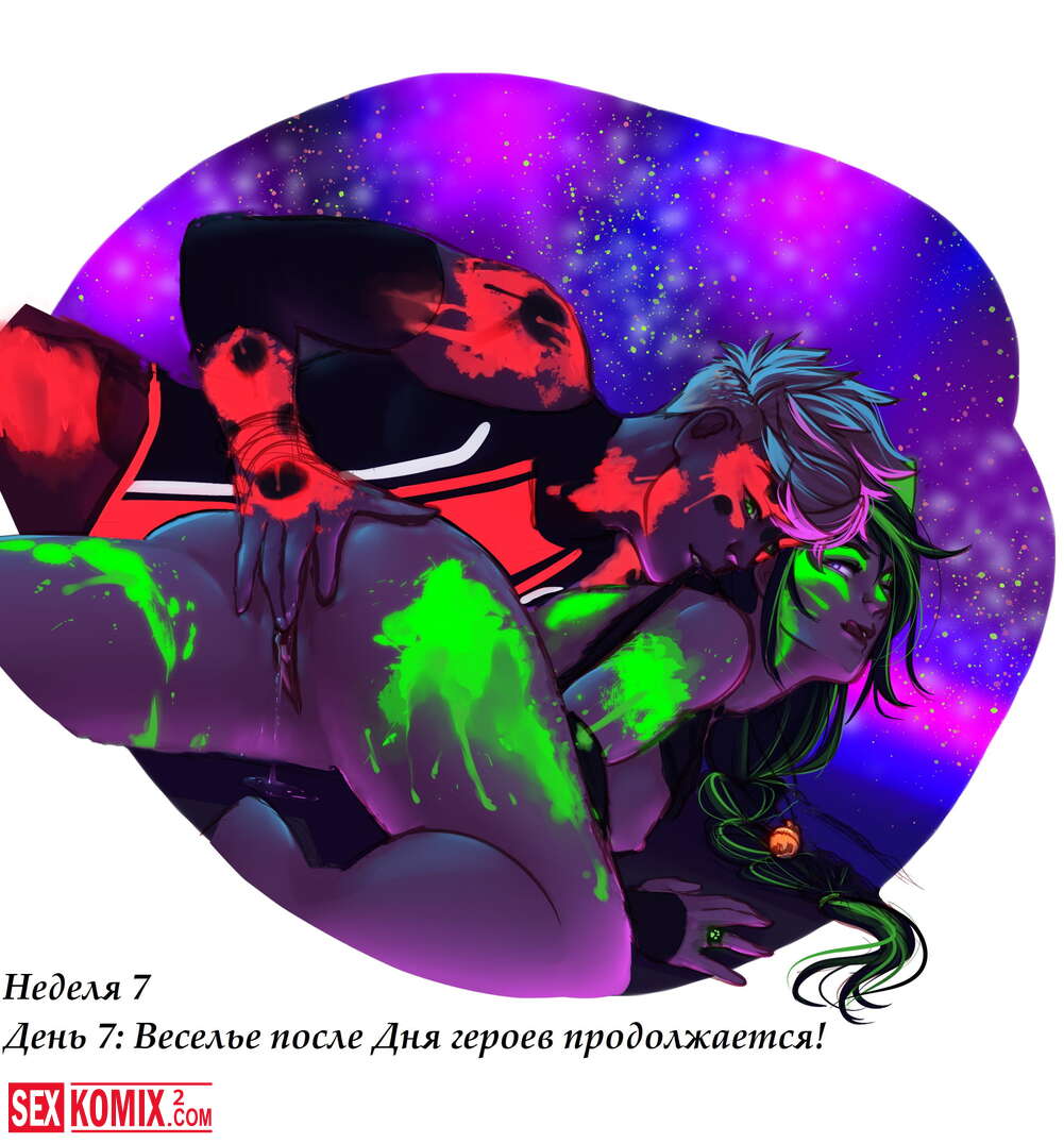 Порно комикс Недели Супергероев. Часть 7. Новые приключения. Продолжение секса каждый день, вдвоем заниматься сексом не так весело, поэтому они позвали своего друга, для секса втроем.