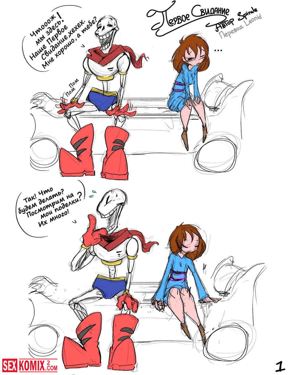 Порно комикс Первое Свидание. Undertale. Не смотря на то, что это первое свидание девушка сразу решила заняться сексом с парнем и показала ему сиськи.