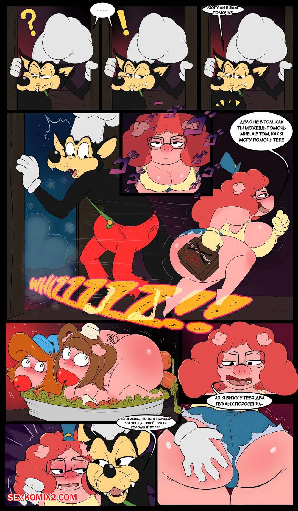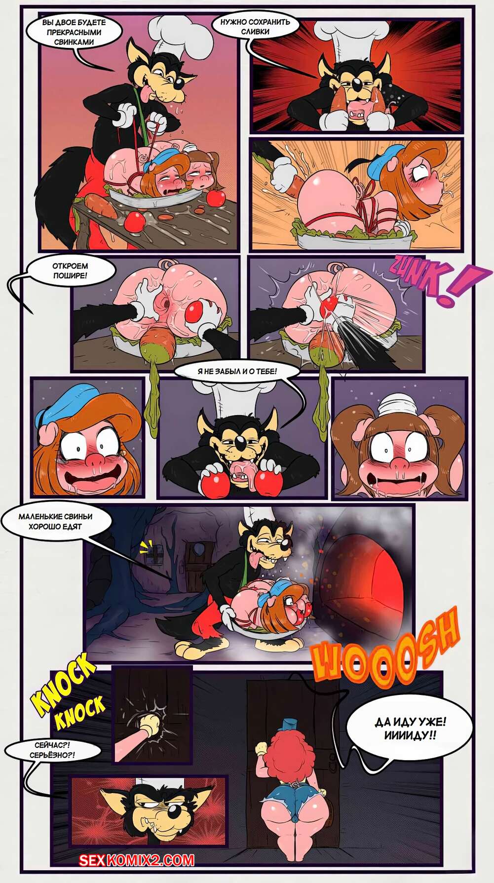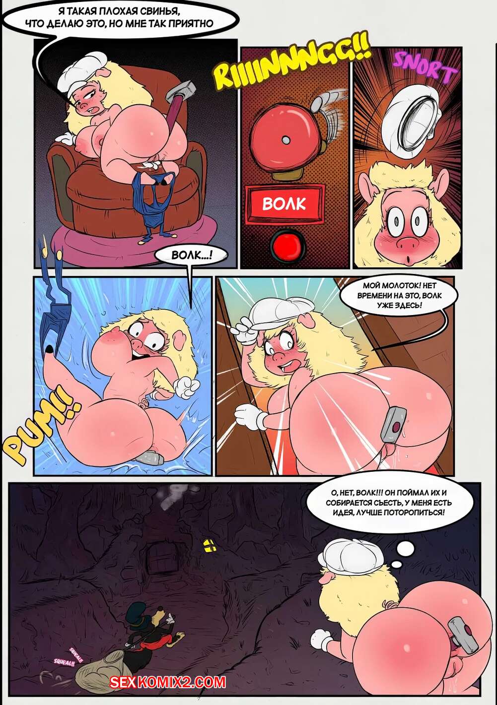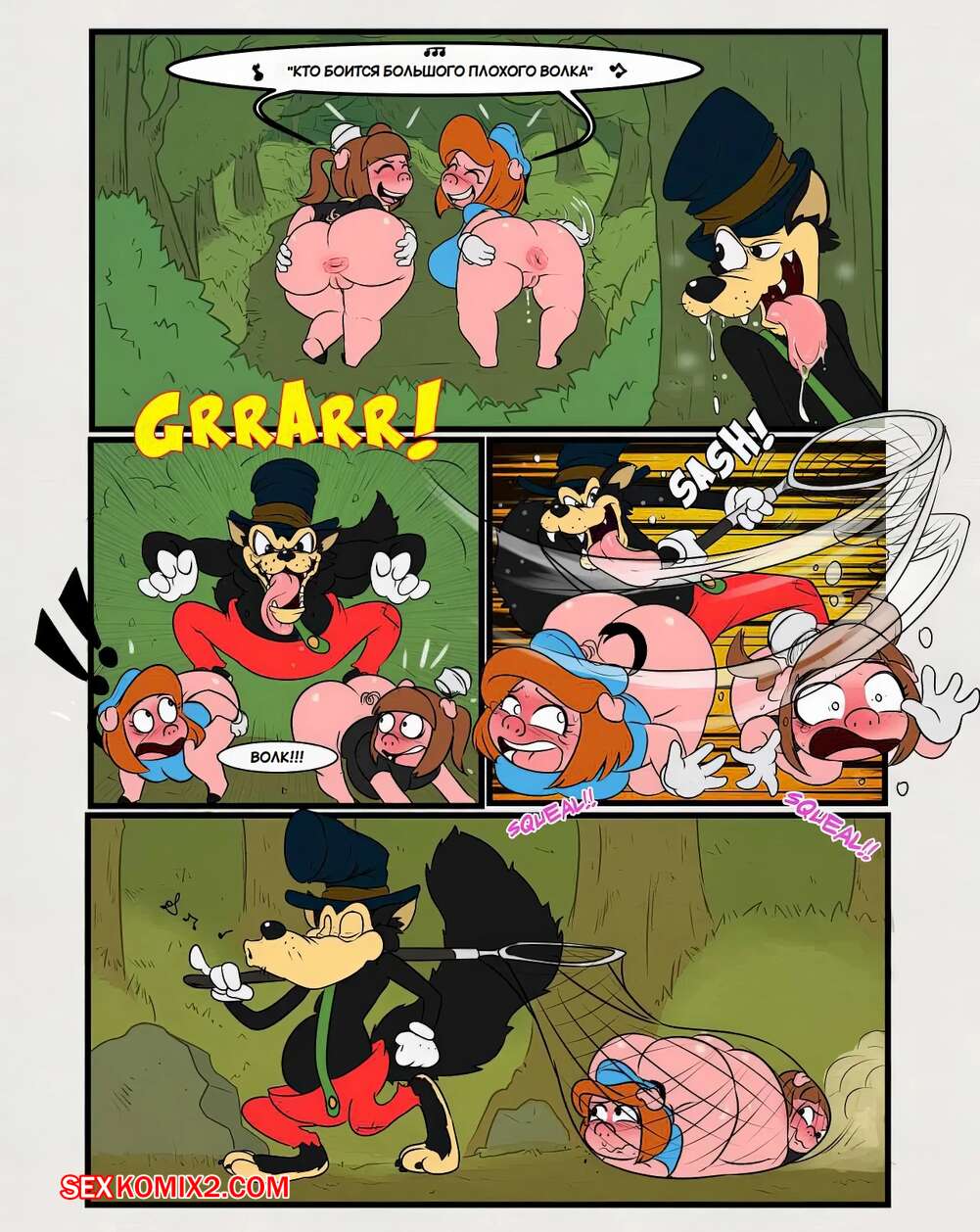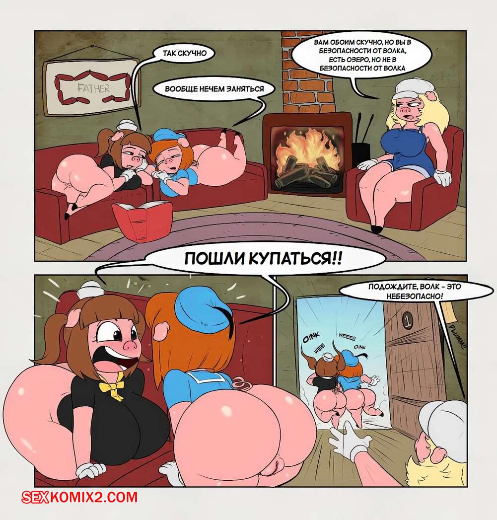 Порно комикс Три свиньки. The three short stack pigs. Mustoid Волк поймал в лесу трех горячих девушек свинок. Он потащил их к себе домой, где хорошенько выебал их своим большим членом и заполнил своей горячей спермой.