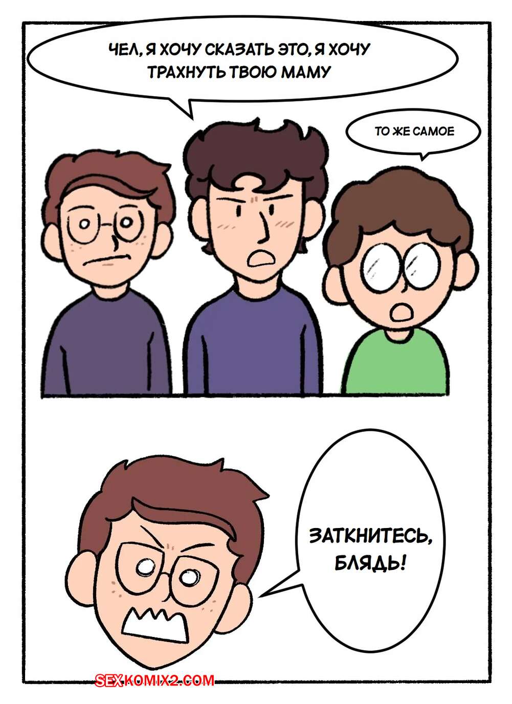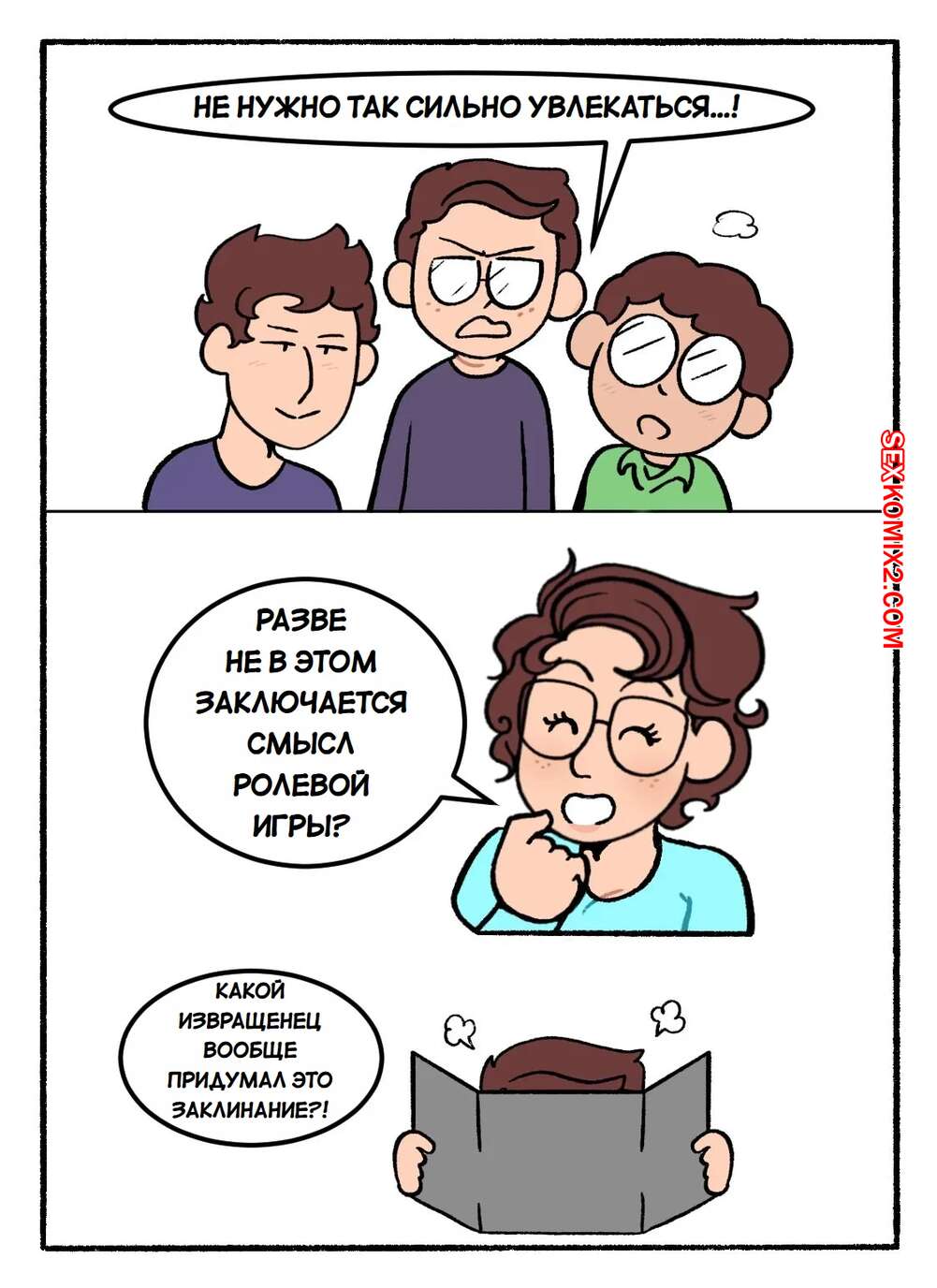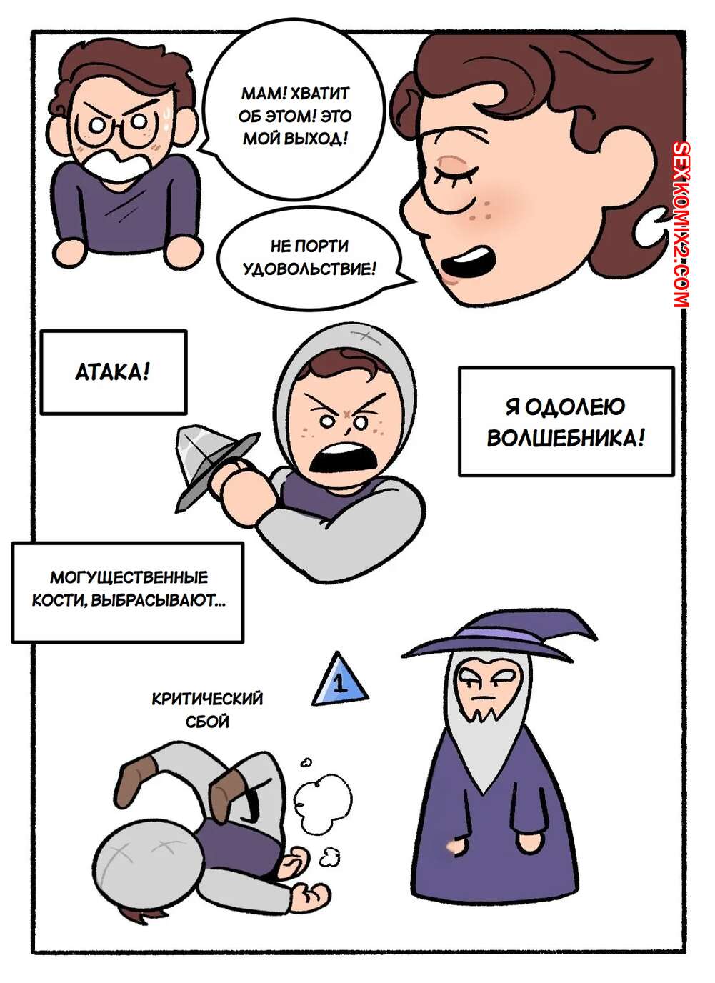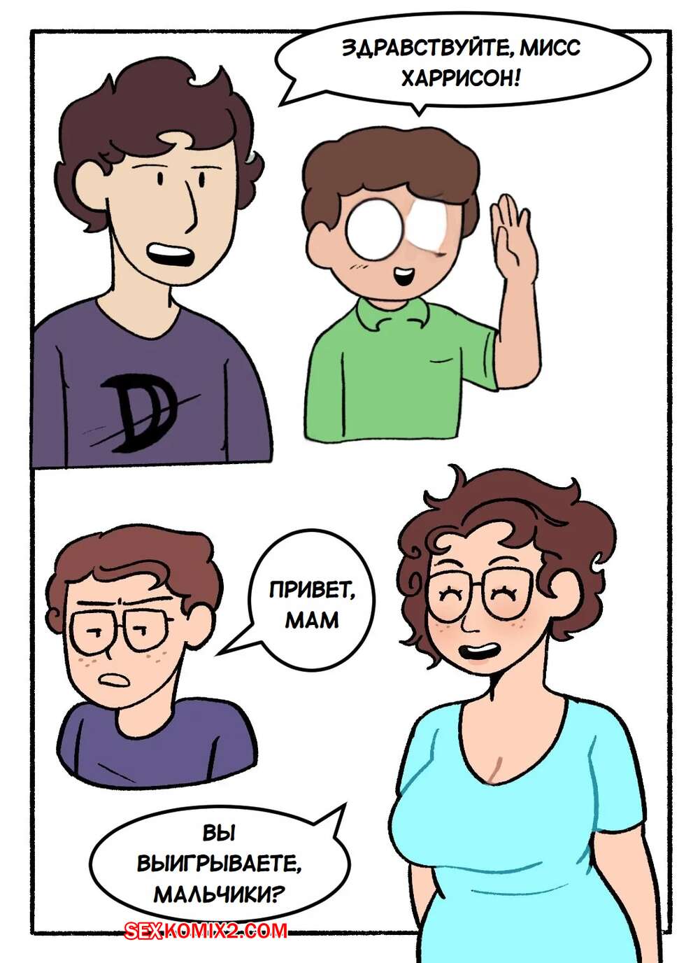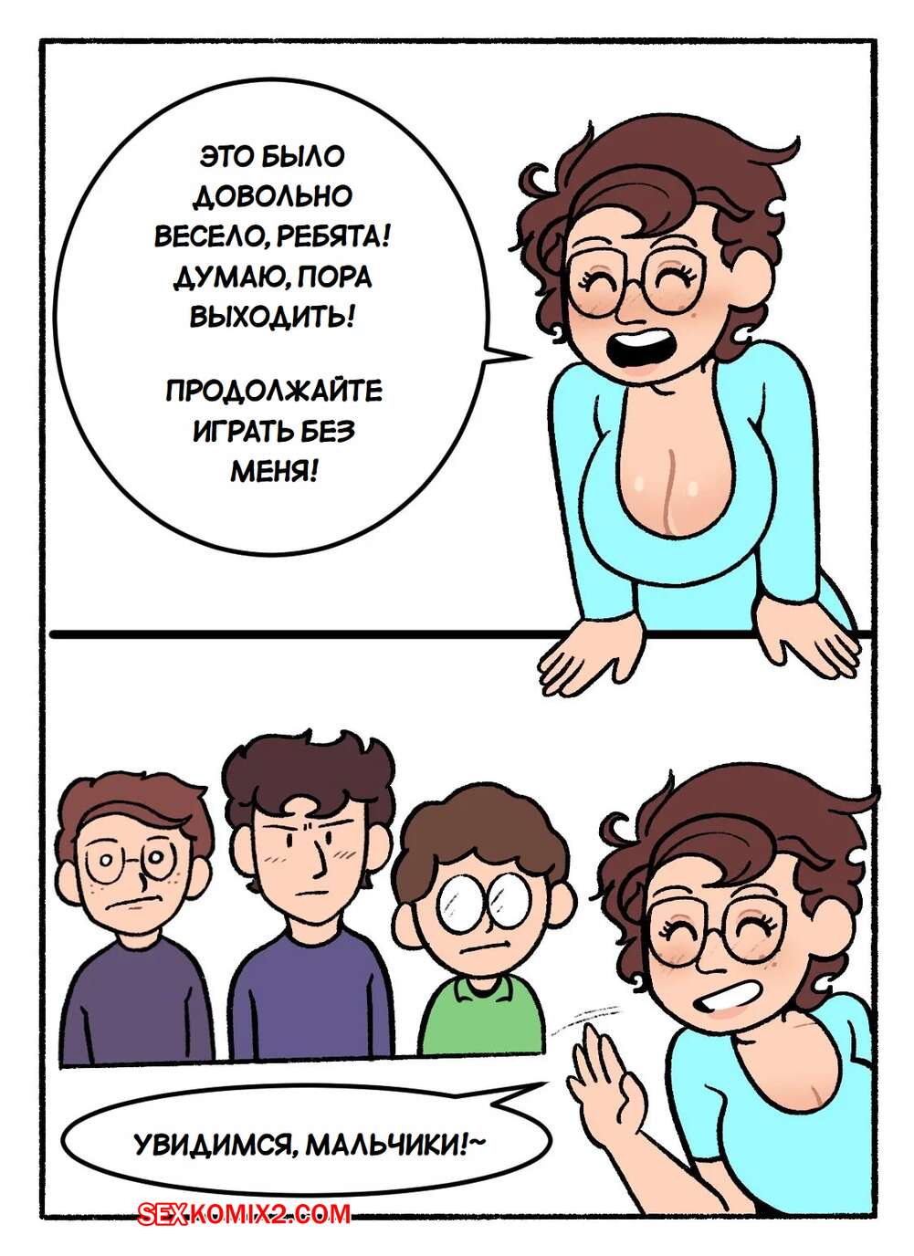 Порно комикс Мама. Не прерывай нашу кампанию DnD. Часть 1. DeadEndDraws Парень пригласил своих друзей, чтобы поиграть в DnD. Они увлеклись игрой, но им помешала мамка парня, которая решила повеселиться с сыном и его друзьями. Милфа разделась и возбудила парней своим телом, после чего стала сосать их члены.