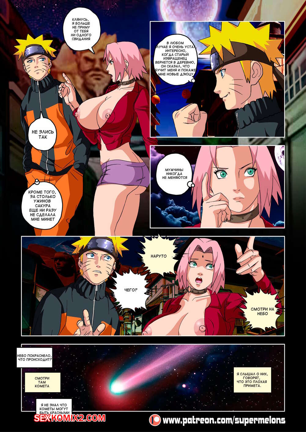 Порно комикс Наруто. Красная комета. The Red Comet. Naruto. Super Melons. Наруто и Сакура вернулись с миссии в стране огня, где они имели дело с кланом кохаку - группой оживших зомби-ниндзя. среди них была фука, опасная привлекательная