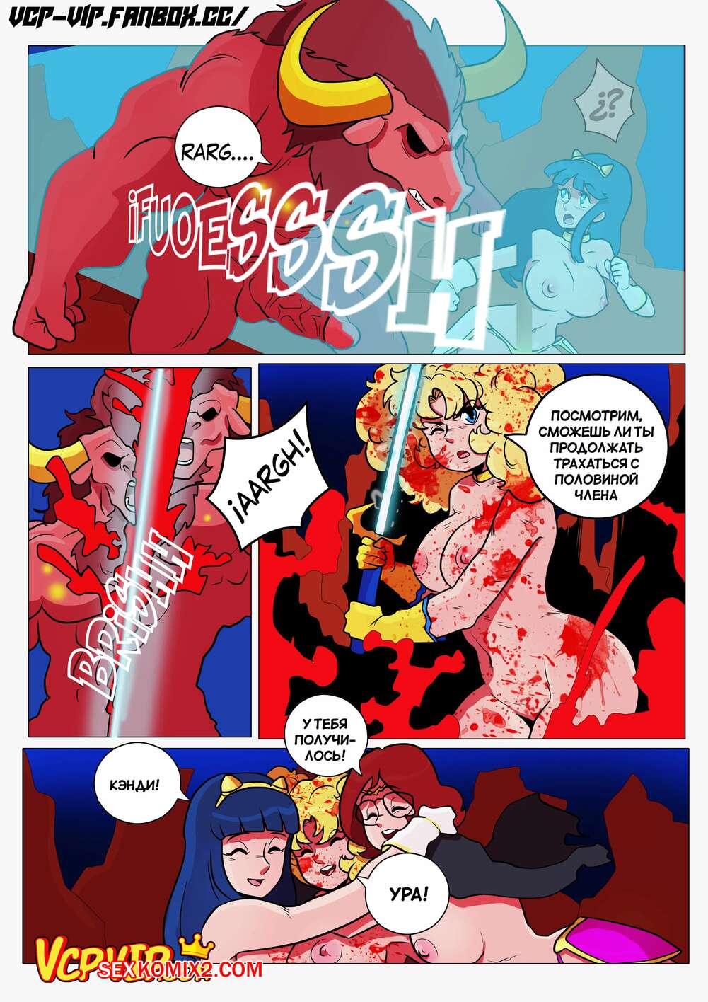 Порно комикс Candy Candy. Конфетная страна. Фантазия. Candy Land. La Fantasia. ElChicoDetergente Орки схватили горячих красоток и решили с ними повеселиться. Они раздели девушек и дали им отсосать свои большие хуи, после чего выебали их во все дырочки, доставив красоткам удовольствие.