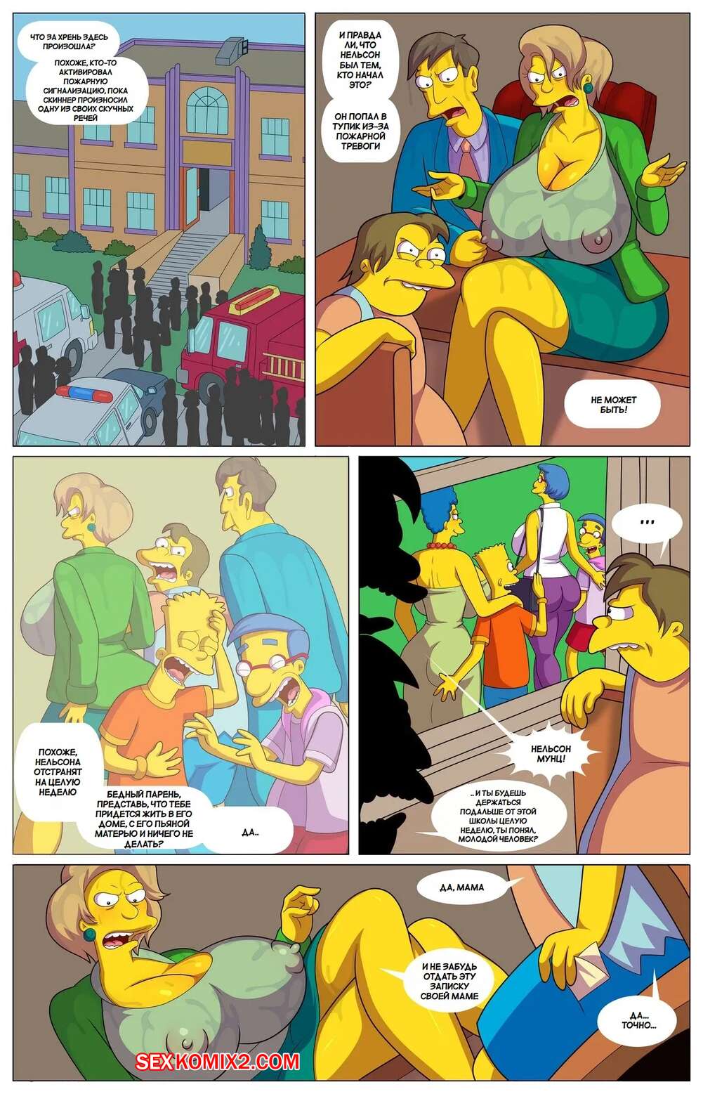 Порно комикс Симпсоны. Квест хулигана. Bullys Quest. Arabatos , Ventz Comics. Горячие милфы не могут устоять перед большим членом Нельсона. Красотки раздеваются и сосут большой хуй паренька, после чего дают ему себя выебать во все дырочки.