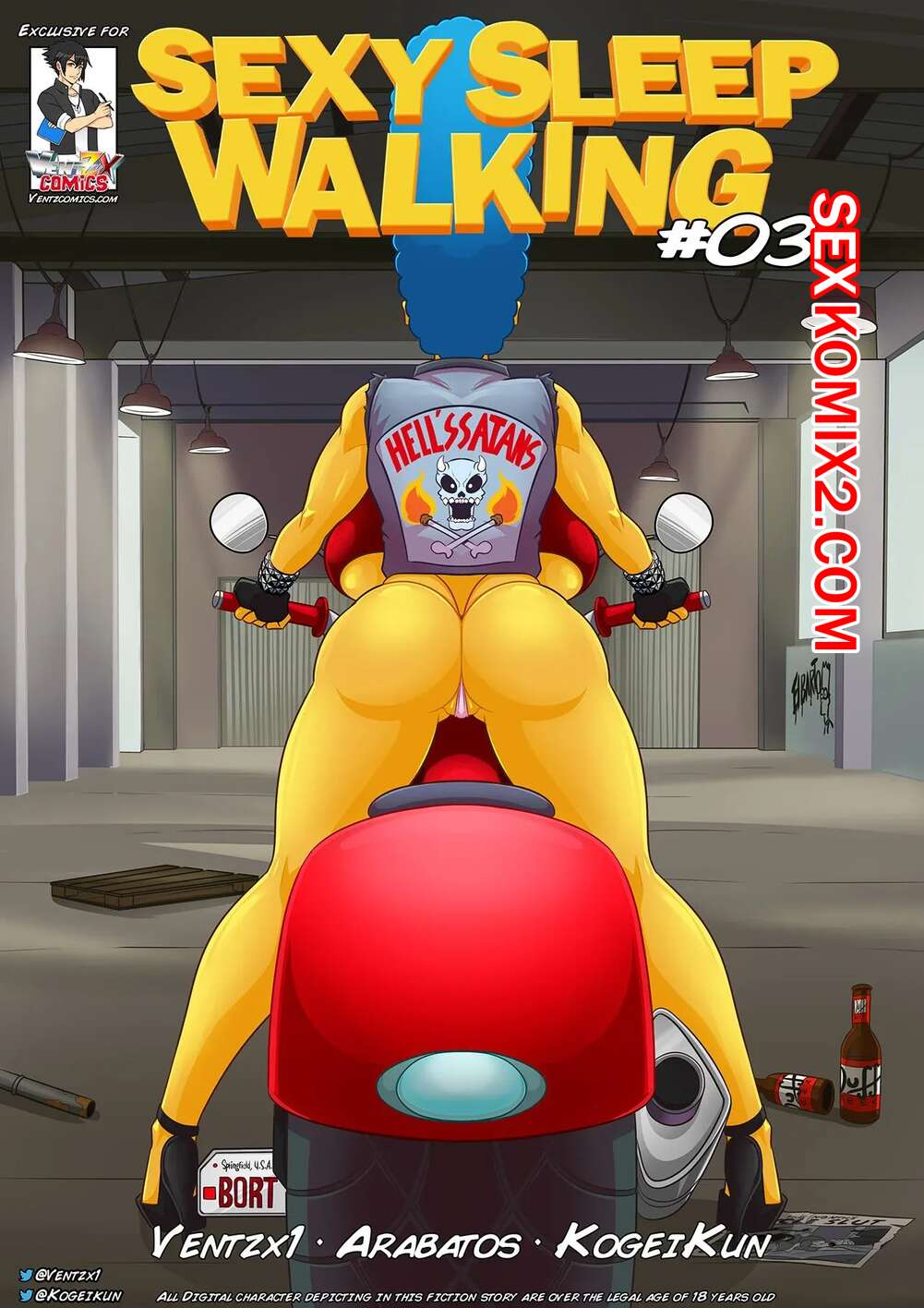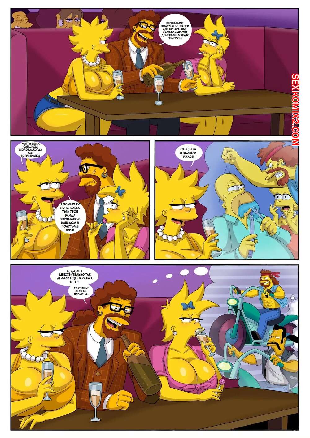 Порно комикс Симпсоны. Сексуальные прогулки во сне. Часть 3. Sexy Sleep Walking. KogeiKun Две сестренки пошли в бар, где познакомились с брутальным мужиком. Девушки разделись и отсосали его большой хуй, после чего дали ему себя хорошенько выебать.