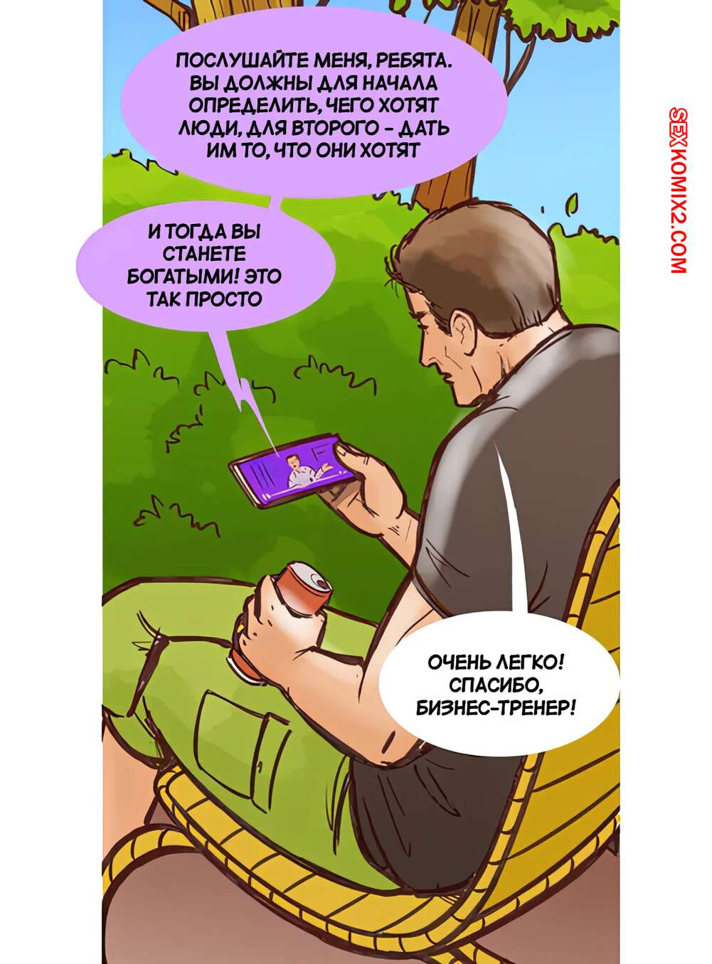 Порно комикс Успешный стартап. Succesfull startup. DISARTEN. Парень решил купить себе новую машину и придумал идею для стартапа. Он связал свою сексуальную жену и позволяет другим мужикам ебать красотку во все дырочки за хорошую сумму денег.