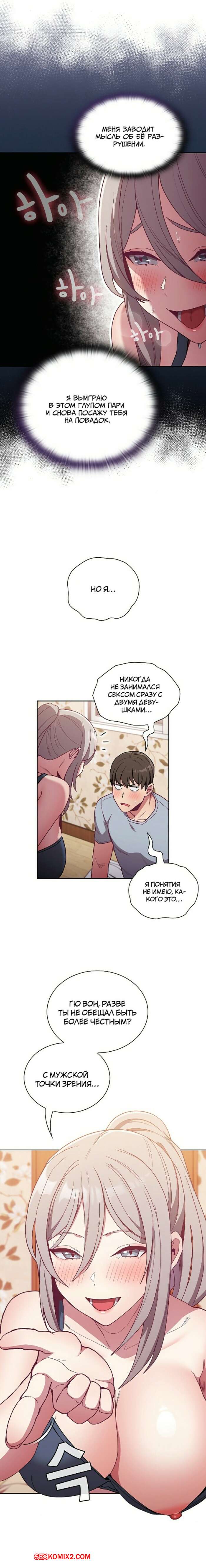 Порно комикс Реабилитация горничной. Части 50 и 51 и 52 и 53. Maid Rehabilitation Две горячие красотки были очень возбуждены и хотели трахаться. Они отправились в комнату к парню и разделись перед ним, после чего стали сосать его член, желая ощутить его в себе.