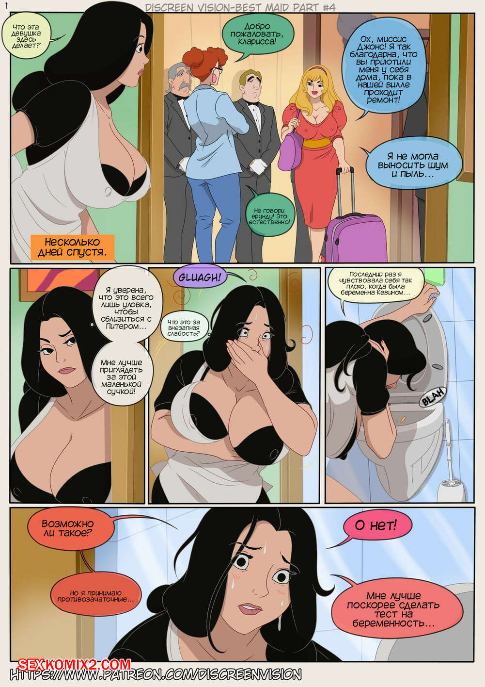 Порно комикс Лучшая горничная. Часть 4. Best maid. Discreen vision. Inusen Горничная увидела, как к ним в дом приехала Кларриса пожить на время, чтобы сблизиться с Питером. Брюнеточка почувствовала слабость и заподозрила, что может быть беременна.