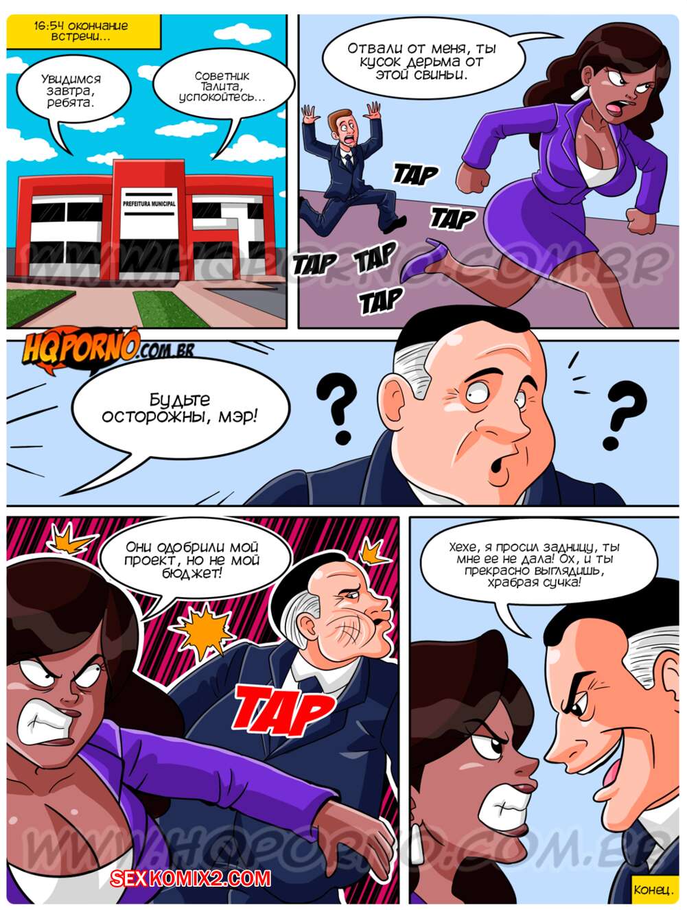 Порно комикс Мэр извращенец. Часть 2. O prefeito tarado. HQPorno Мэр уединился в кабинете со своей горячей секретаршей и стал ее соблазнять, обещая ей золотые горы. Красотка повелась на предложение босса и отсосала его член, после чего дала выебать свою задницу.