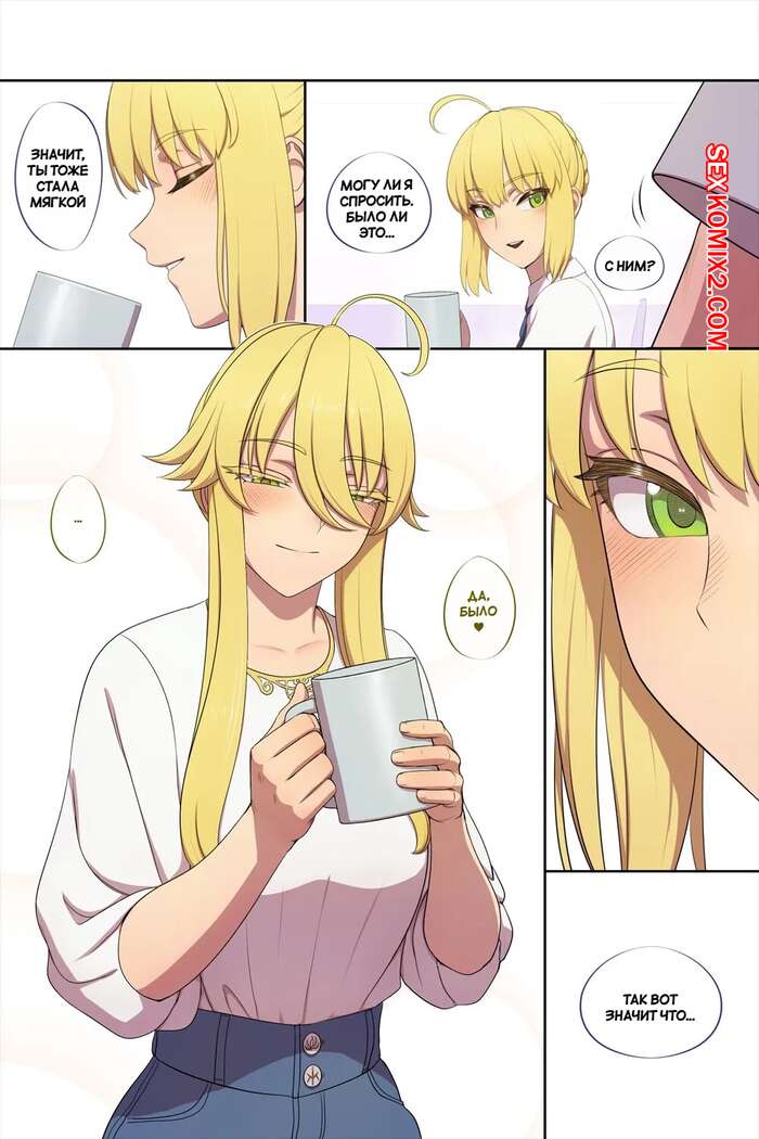 Порно комикс Лансер Артория. Часть 2. Lancer Artoria love. lvl. Горячая блондинка с шикарным телом без ума от большого члена своего дружка. Она раздевается и соблазняет парня своими формами, после чего дает ему себя выебать.