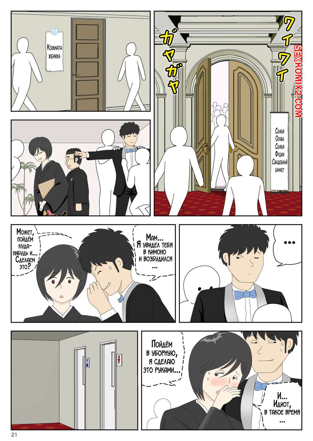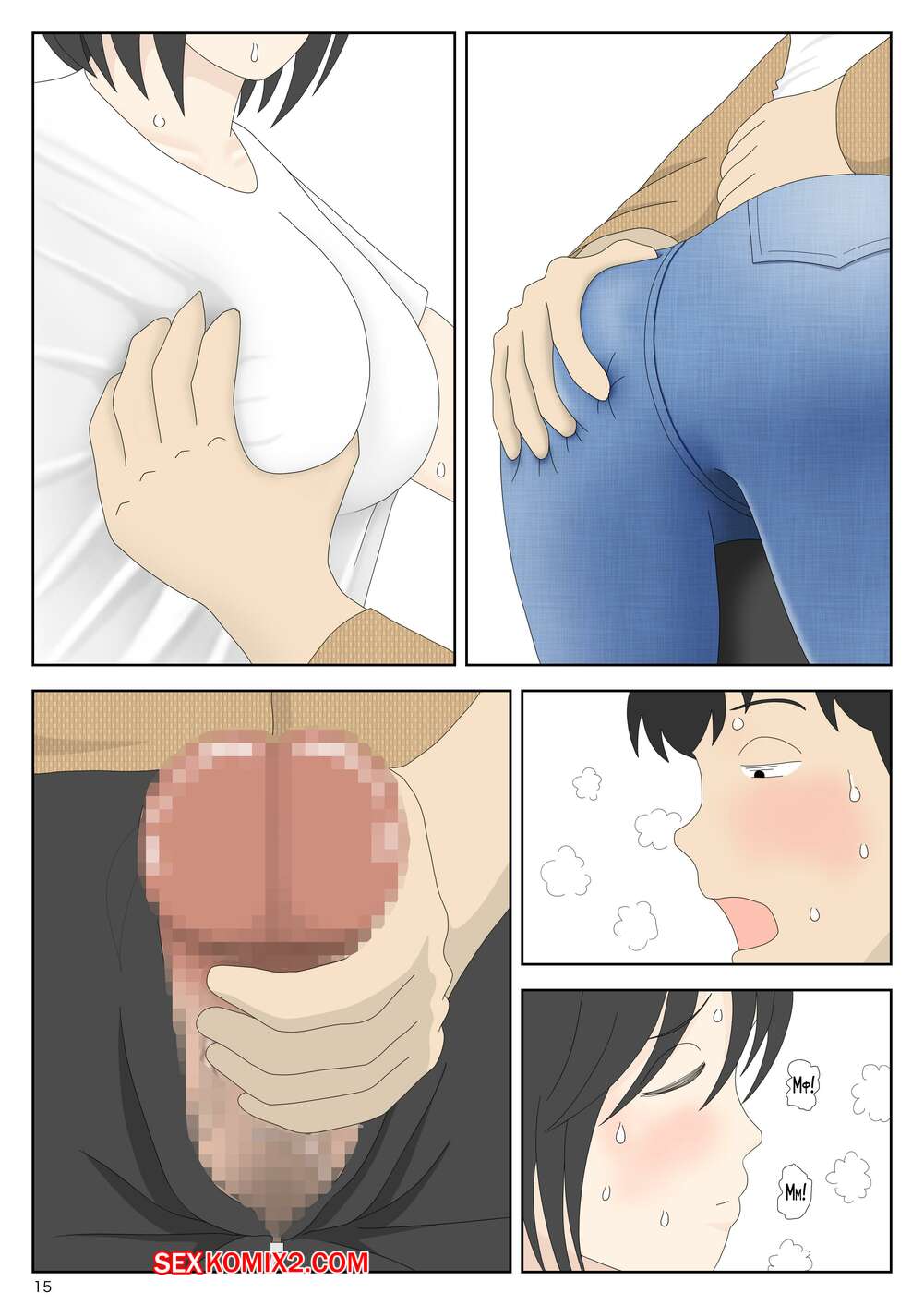 Порно комикс Моя мама мастурбатор. Часть 6. Onaneta Kaasan. Mizuarai No Kai Молодой парень был очень возбужден и решил повеселиться со своей горячей мамочкой. Он раздел красотку и дал ей отсосать свой большой хуй, после чего выебал ее пизденку.