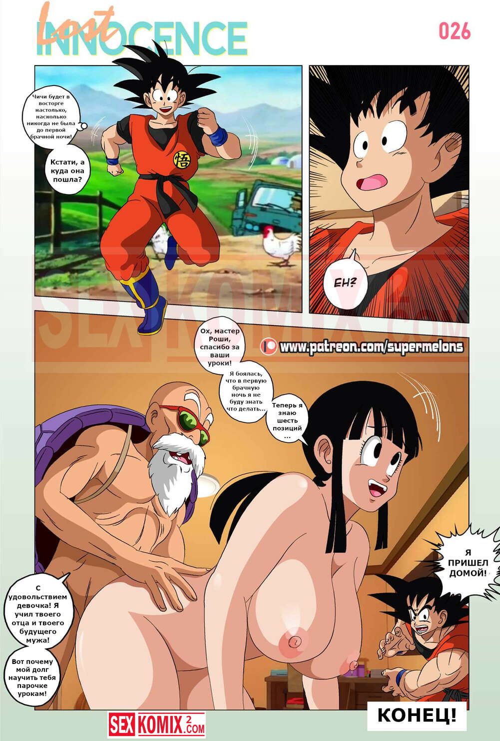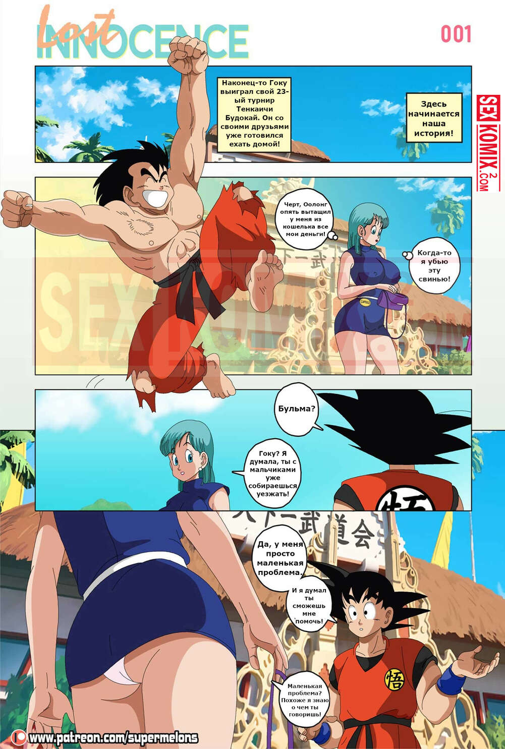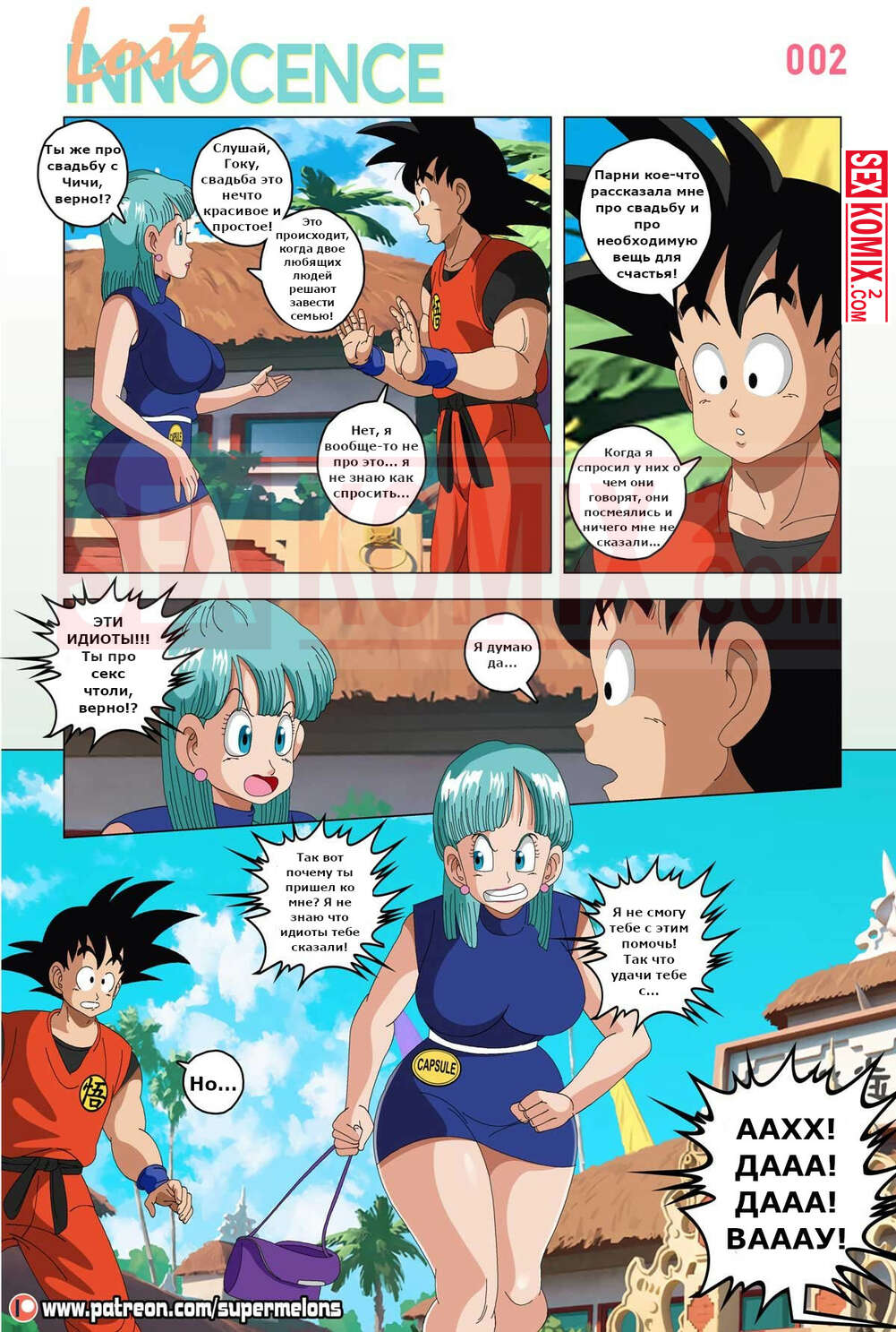 Порно комикс Dragon Ball. Утраченная невинность. Super Melons. Парень перед долгой дорой попросил свою знакомую девушку научить его сексу, девушка сначала начала возмущаться. Но потом передумала и показала, что нужно делать.