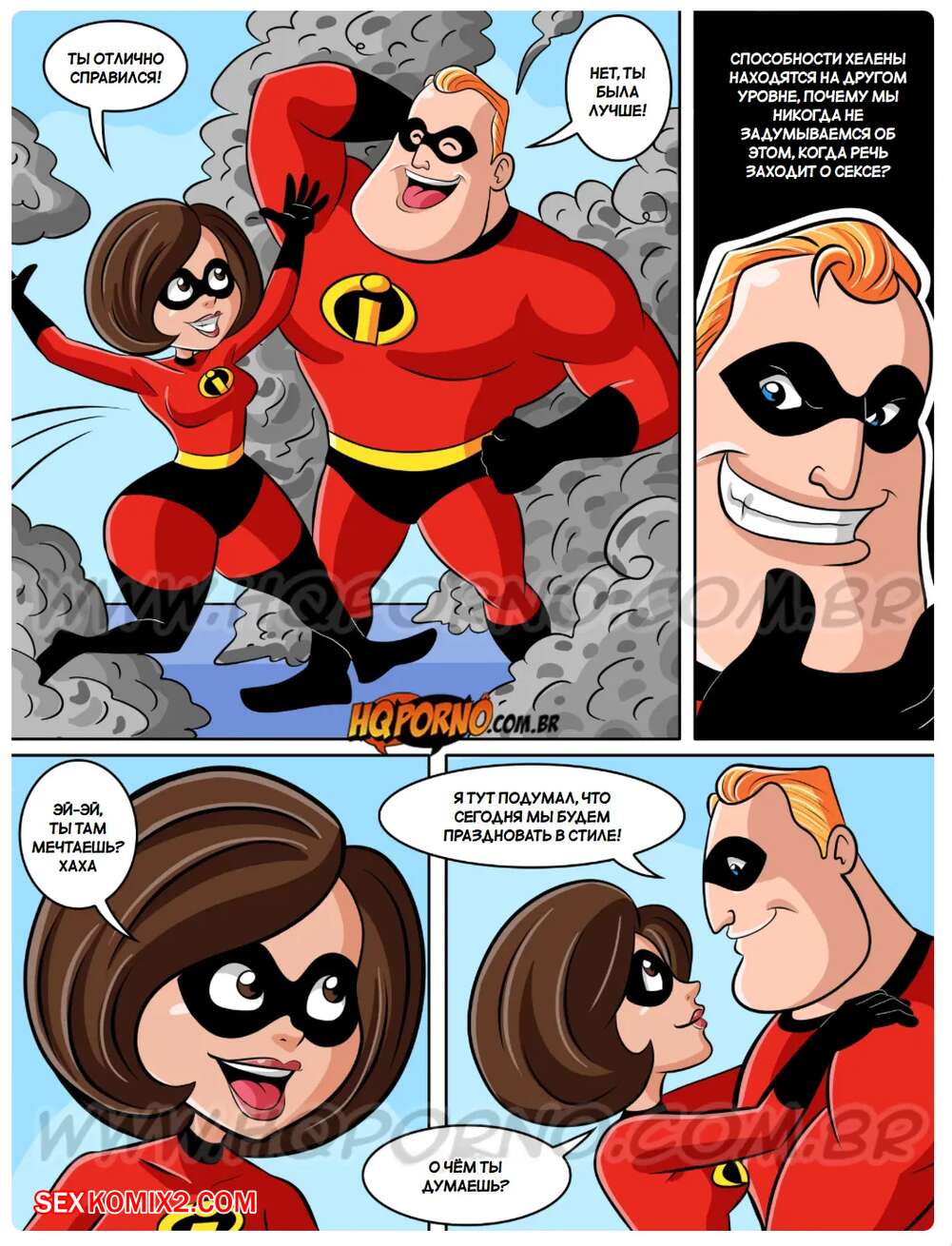 Порно комикс Невероятная семья. Часть 6. Вино и порно. Familia Incrivel. HQporno. После победы над очередным злодеем. Супер муж и жена устроили романтический вечер под вино.