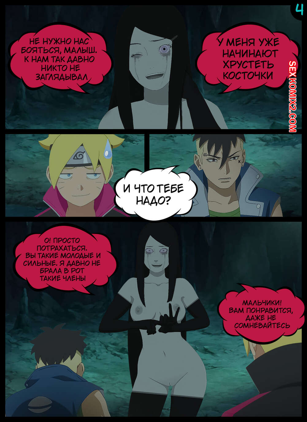 Порно комикс Наруто. Сущий Кошмар. A Terrible Nightmare. KristoLin Боруто и Каваки попадают к демонам, пытающимся всячески овладеть их разумом. Девушки заглатывают члены парней и дают им выебать свои пизденки, исполняя самые желанные фантазии пареньков.