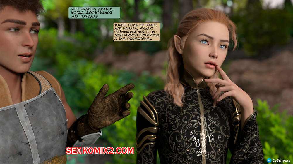 Порно комикс Мой соратник эльфийский принц. Часть 1. Kizaru3D Парень находился на грани смерти, но к нему на помощь пришла сексуальная девушка. Он нашел для девушки сексуальный наряд, после чего они стали путешествовать вместе.
