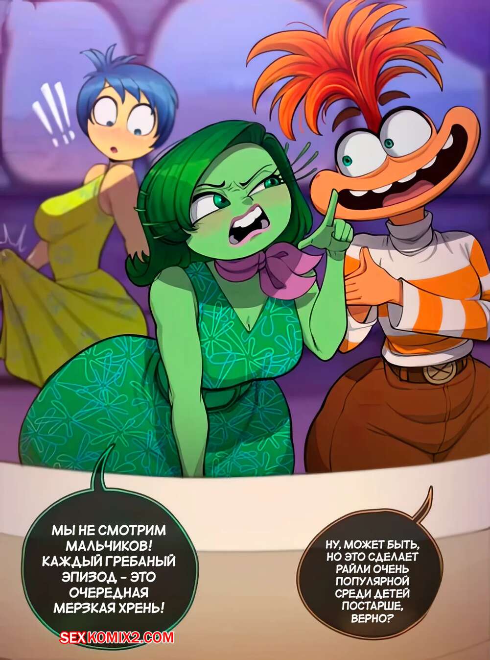Порно комикс Inside Out. Чтото пробудилось внутри нее, новое чувство. Blackwhiplash. Девушка возбудилась, глядя на большую задницу своей подруги. Она встала на колени и отсосала дырочки красотки, после чего выебала ее своим большим хуем на глазах их друга.