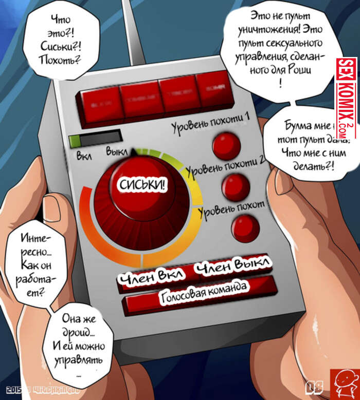 Порно комикс Dragon Ball Z. Потерянная глава. Часть 1. Witchking00. Девушка андроид с большими сиськами не подозревает, что у парня есть пульт для управления ей. Теперь он сможет порезвиться как следует.