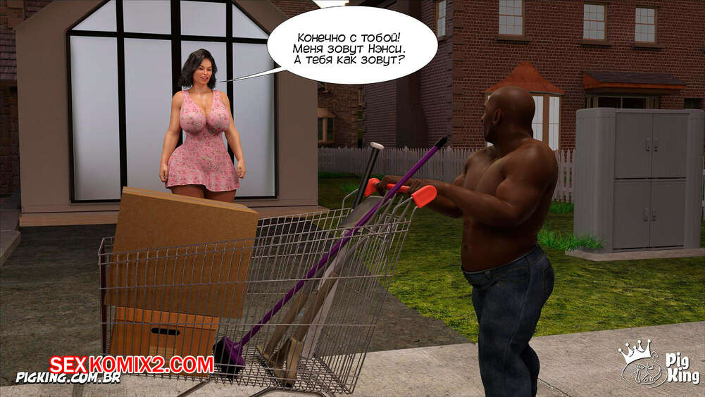 Порно комикс Помощь мамы. Часть 75. Moms Help. CrazyDad3D Горячая милфа Нэнси встретила на улице темнокожего парня карлика и пригласила его к себе домой, желая повеселиться. Красотка разделась и отсосала хуй парня, после чего дала ему себя выебать.
