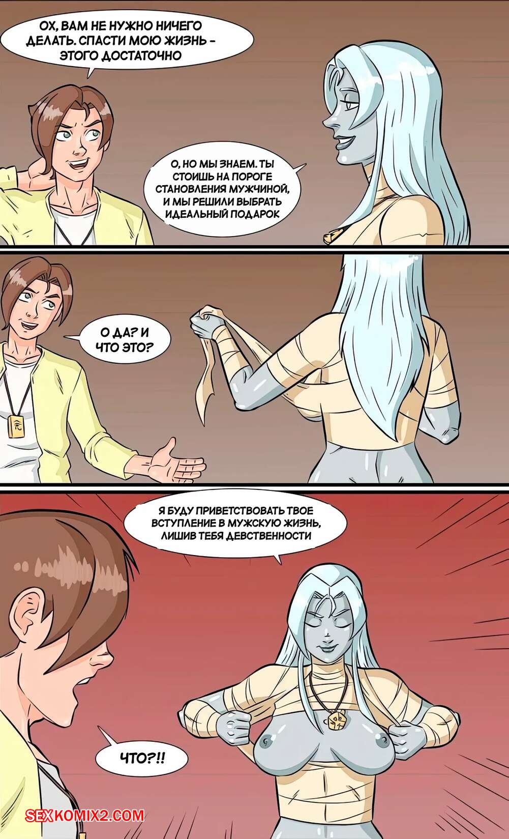 Порно комикс Мамочка живая. С днем рождения. Mummies Alive. Happy Birthday. RuinCounty В день своего рождения молодой парень спалил свою горячую мамку за дрочкой в ванной. Она заметила возбуждение сына и стала сосать его большой хуй, желая сделать ему приятно.